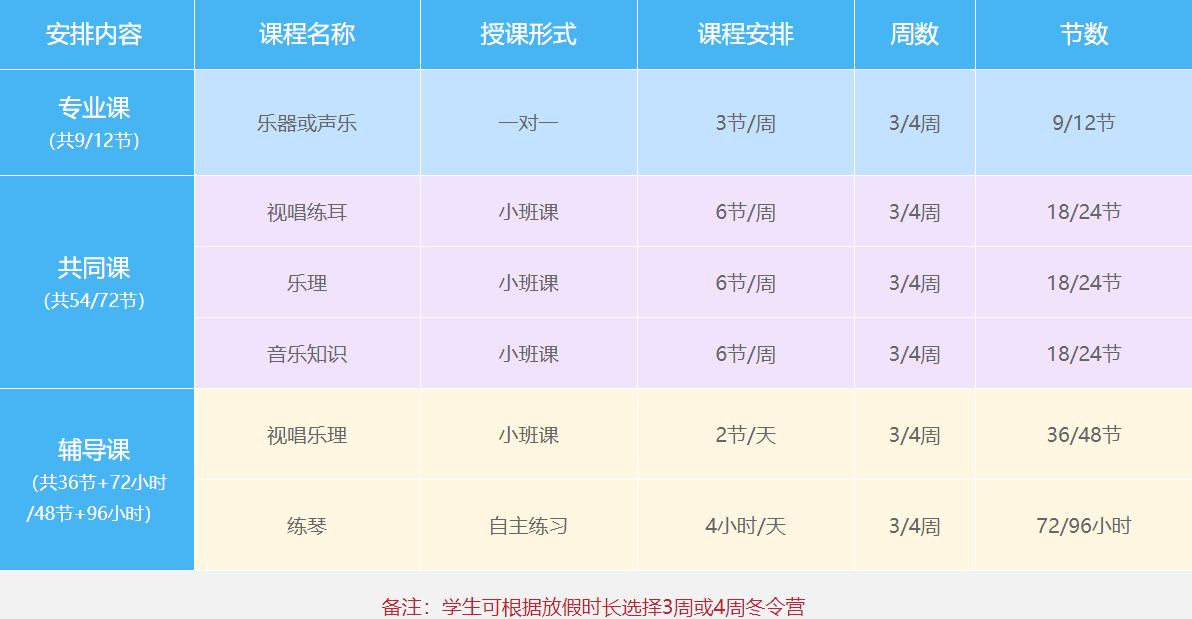 音乐培训冬令营课程安排及活动