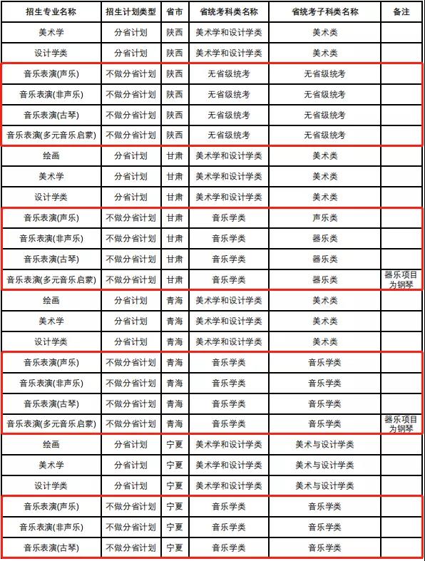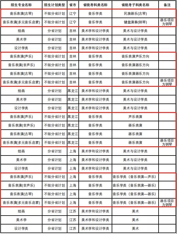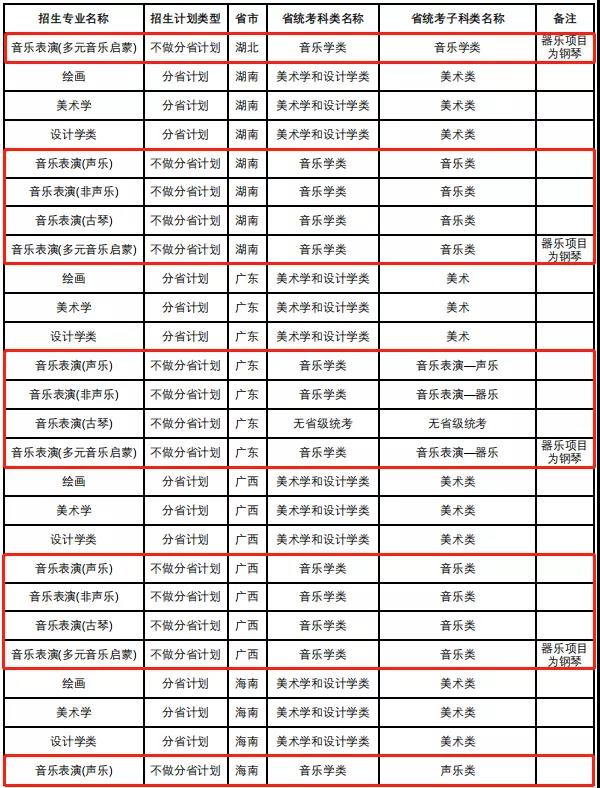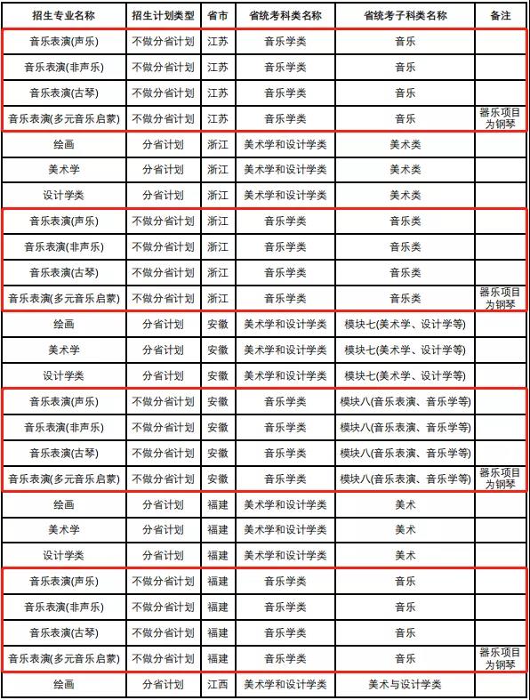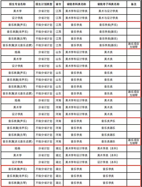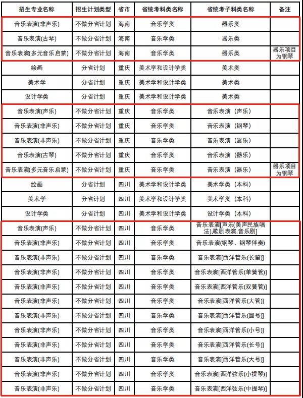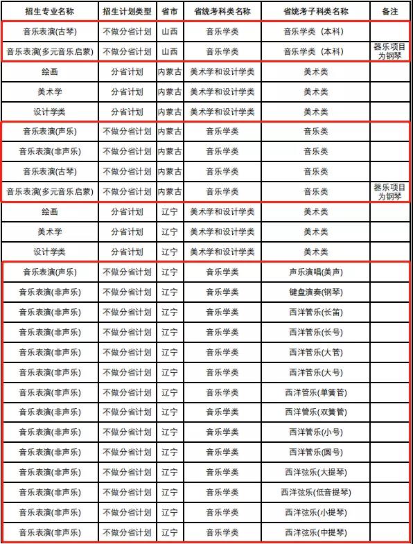 中国人民大学2022年音乐类专业省级统考子科类对照表