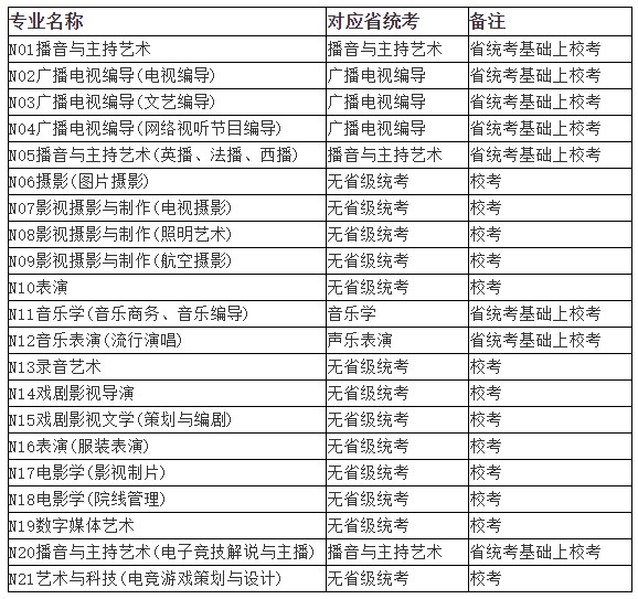2021年艺术类校考专业与各省统考对应关系XDl音乐培训_音乐艺考培训学校-