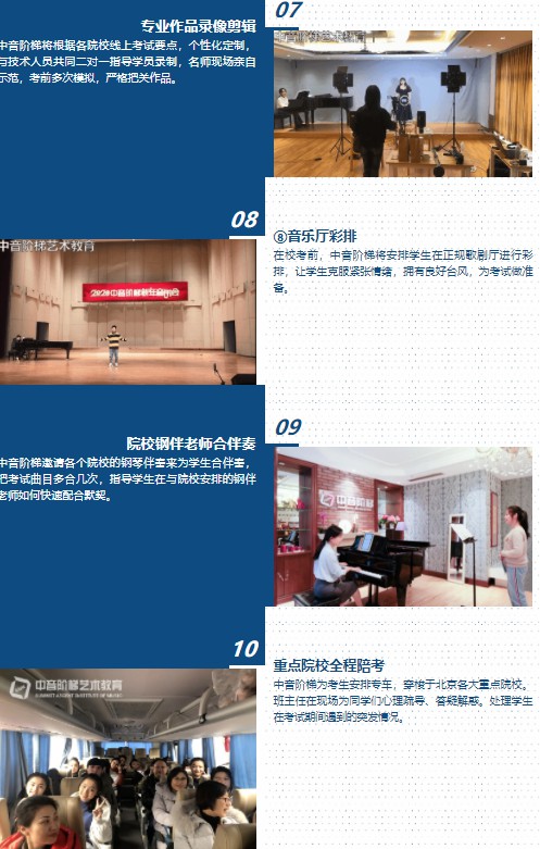 选择学生理想院校,通常为央音、国音、民大等重点音乐音乐高校,作为学生努力的目标院校。