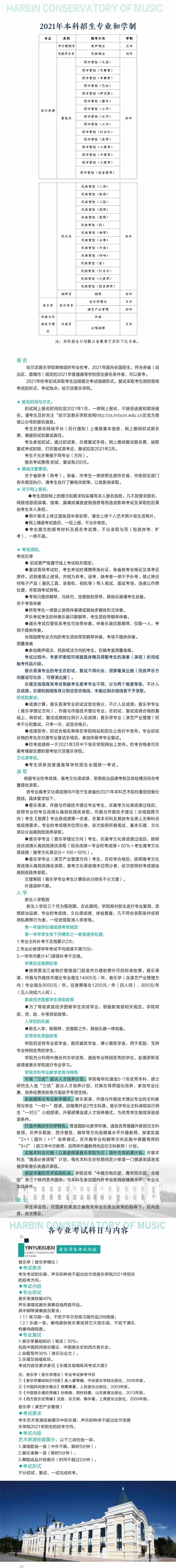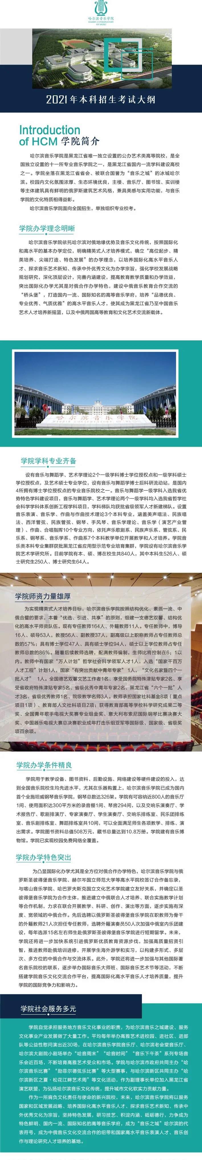 哈尔滨音乐学院2021年本科招生考试大纲