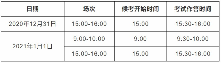 候考开始时间:2021年1月2日9:00