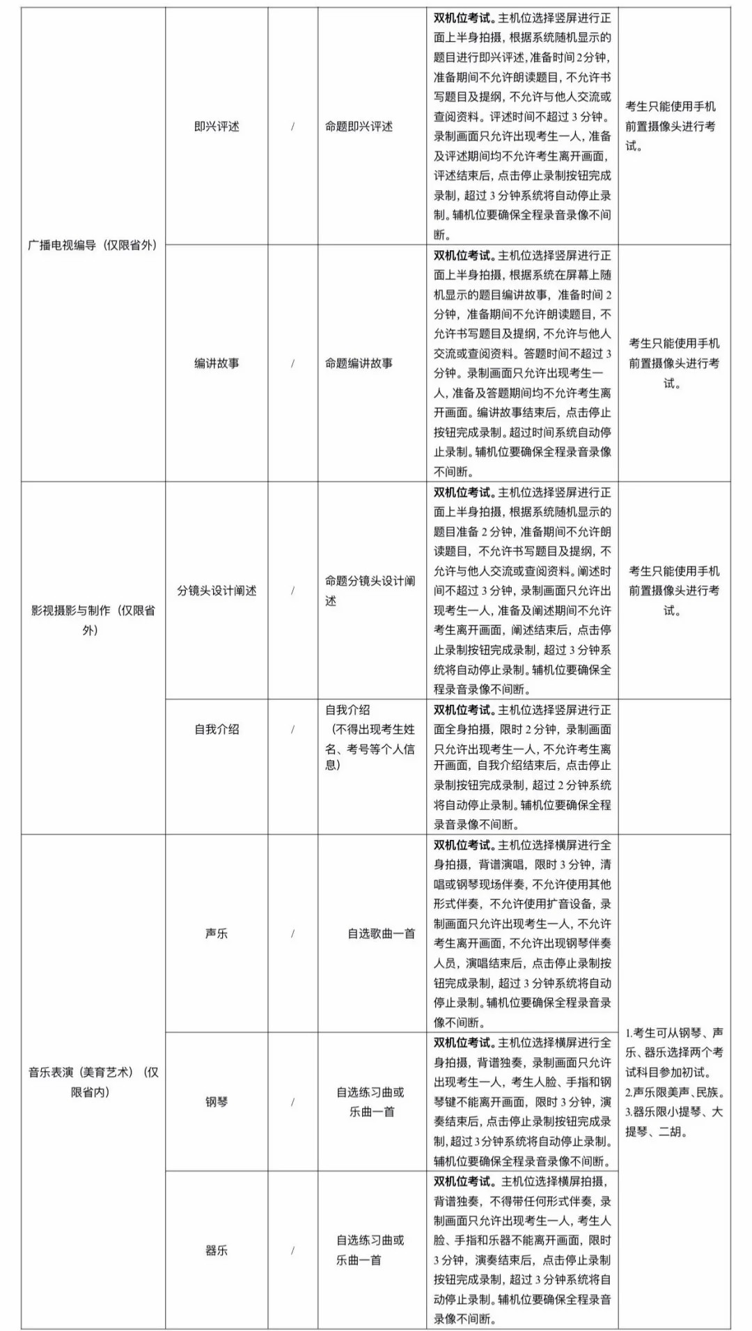 三、考试内容及拍摄要求