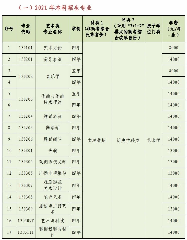 省外生源:2021年暂停艺术类专业校考。凡报考我校艺术类各专业的考生(除广播电视编导,戏剧影视文学、影视摄影与制作、摄影、艺术史论、艺术管理专业外),均须参加生源省(自治区、直辖市)统一组织的该类专业统考,按生源所在省(自治区、直辖市)的有关规定细化报考的专业方向。