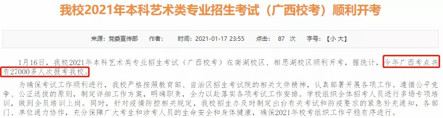 2021年校考广西报名人数共27000多人。