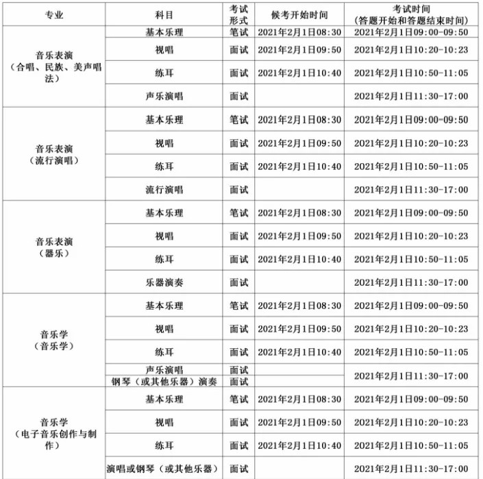 四川文化艺术学院2021年省外音乐类线上正式考试时间安排表
