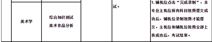 6.根据专业科目考试不同性质,音乐类专业“基本乐理”考试科目,动画专业“绘画基础测试”考试科目,艺术与科技“形态解析与表达”考试科目, 数字媒体艺术“影视画面表现”考试科目,戏剧影视美术设计“色彩”考试科目和公共艺术、书法学、艺术设计学、戏剧学、摄影、录音艺术、戏剧影视文学、广播电视编导、影视摄影与制作、美术学专业各考试科目只有一次考试机会,在考试视频录制过程中,若因异常情况导致主机位视频录制中断,允许考生在2分钟内(超过2分钟将无法登录)再次登录继续录制,登录后,须将画纸或宣纸和草稿纸或答题纸和草稿纸正反面面对主机位镜头重新展示后,再继续考试,若中断超过3次,此科目考试失败,责任考生自负;若因异常情况导致辅机位视频录制中断,允许考生在2分钟内再次登录继续录制,若超过2分钟再次登录,或中断超过3次,认定为考试失败,责任考生自负。