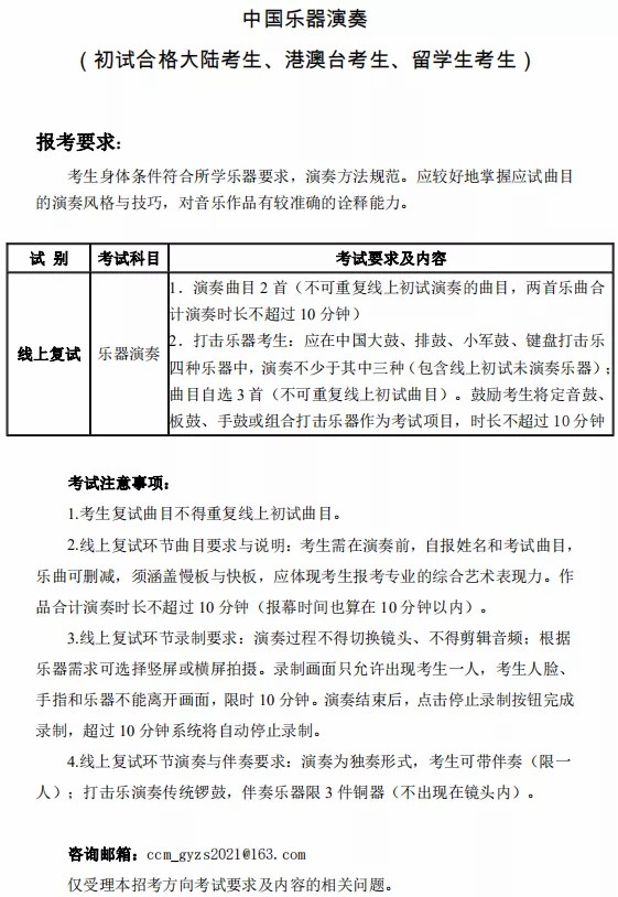 中国音乐学院2021年本科线上复试安排