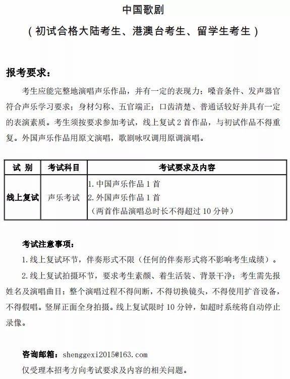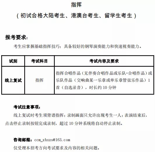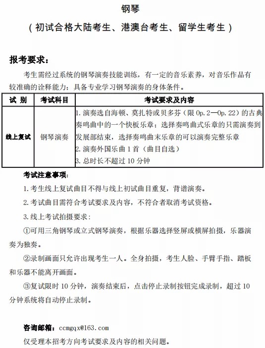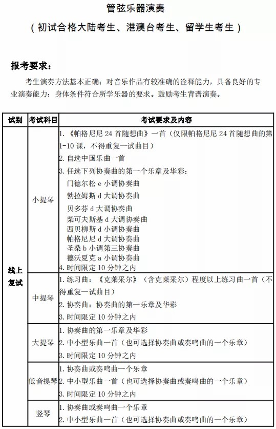 参加线上复试的考生,包括线上初试合格的大陆考生(作曲系、声乐歌剧系、管弦系、国乐系、钢琴系、指挥系)、港澳台考生、留学生考生。