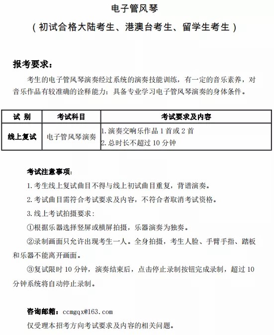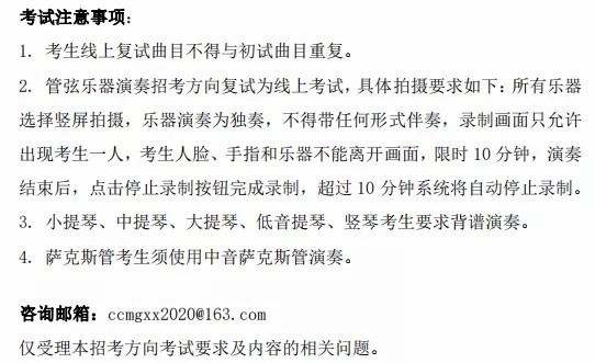 3.复试结果、录取结果等查询的时间,我校将另行通知。请考生持续关注中国音乐学院本科招生信息网。