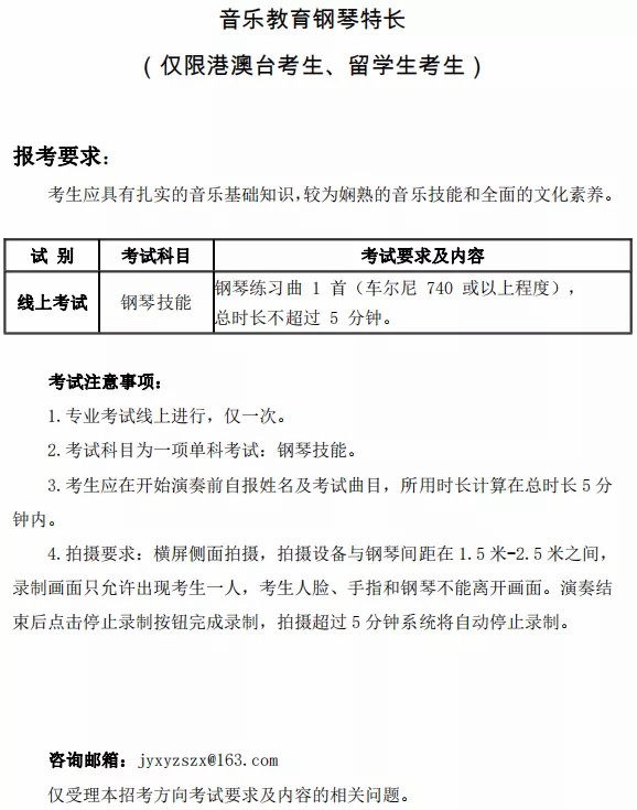 1.中国音乐学院招生咨询邮箱: