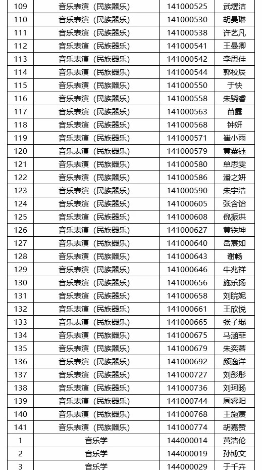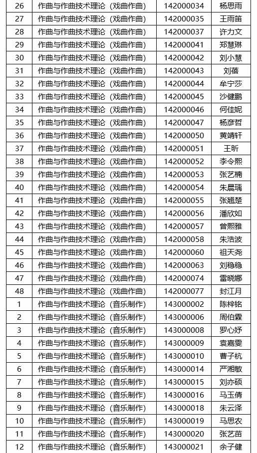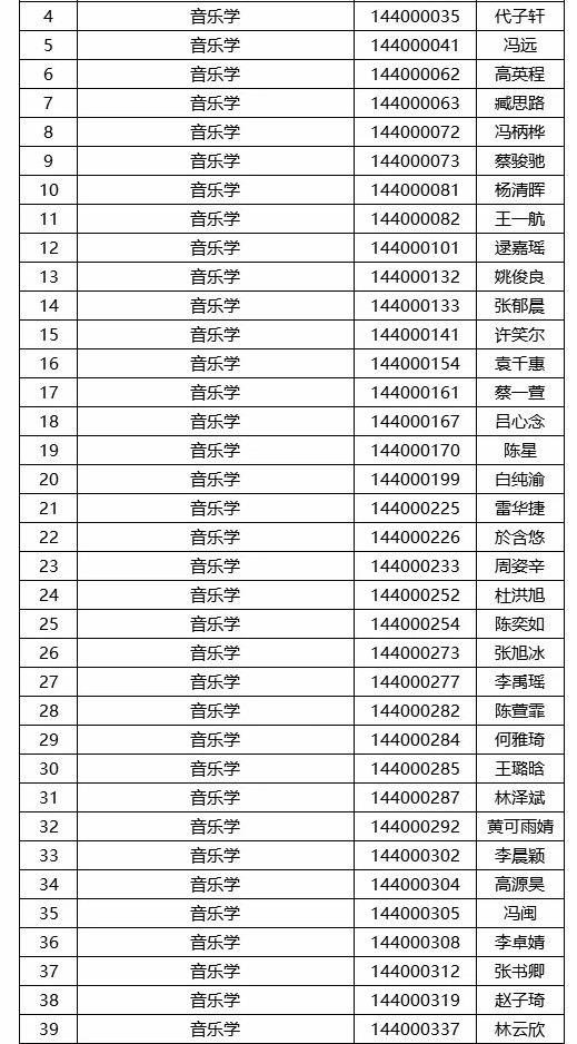 音乐系一试合格名单