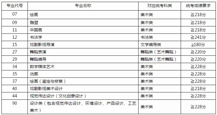 我校部分专业对山东省2021年普通高校招生艺术类专业统一考试成绩有所要求,详见下表: