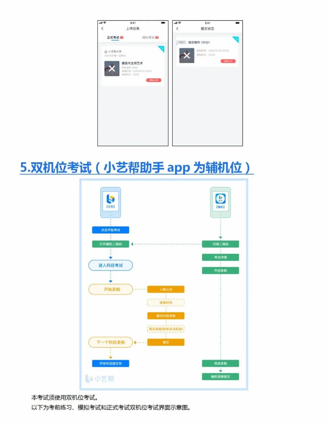 备注:请考生开考前10分钟进入小艺帮APP等候考试,每个学生有两次录制机会,请考生选择其中一次考试视频上传。