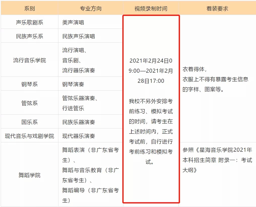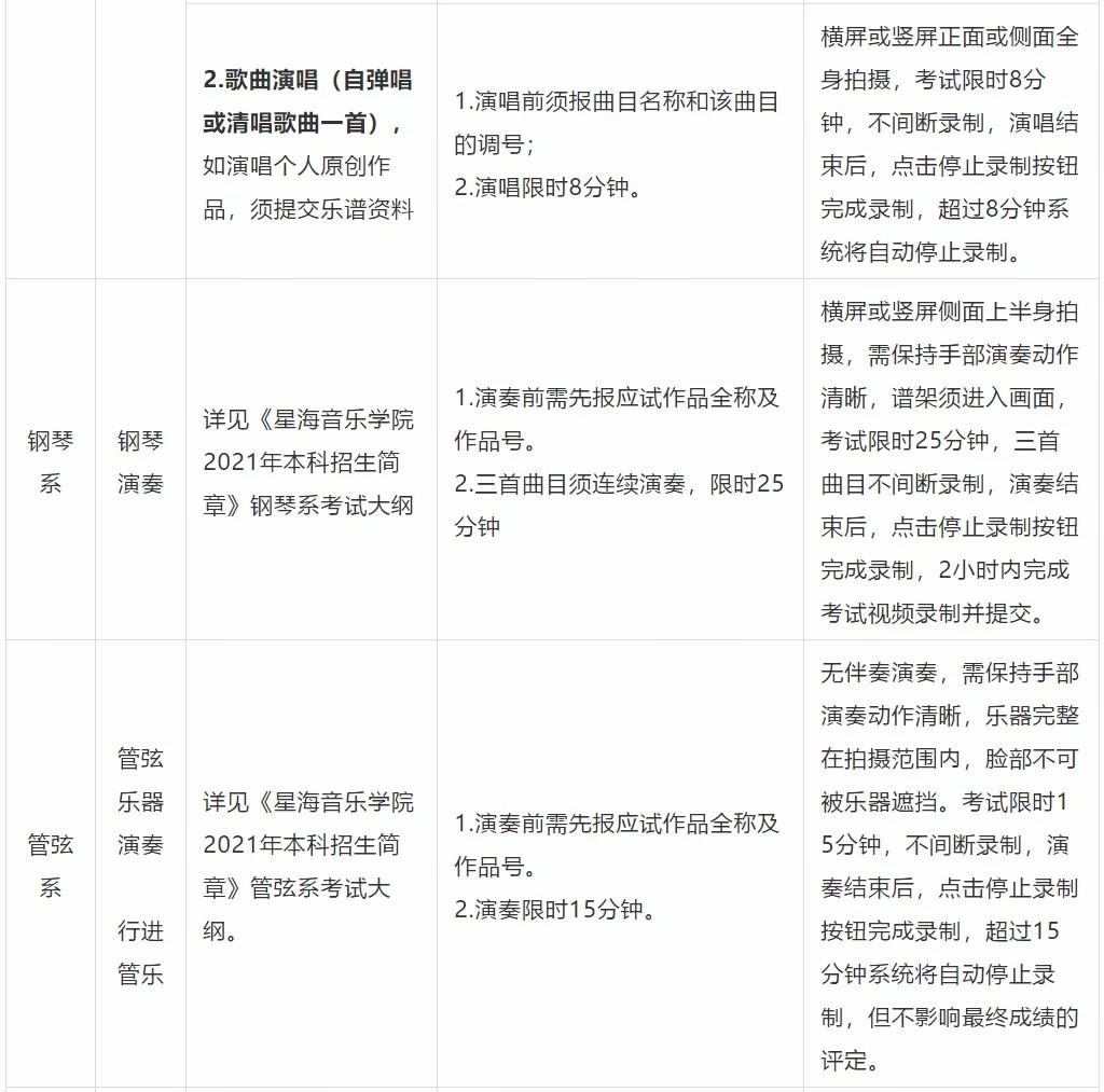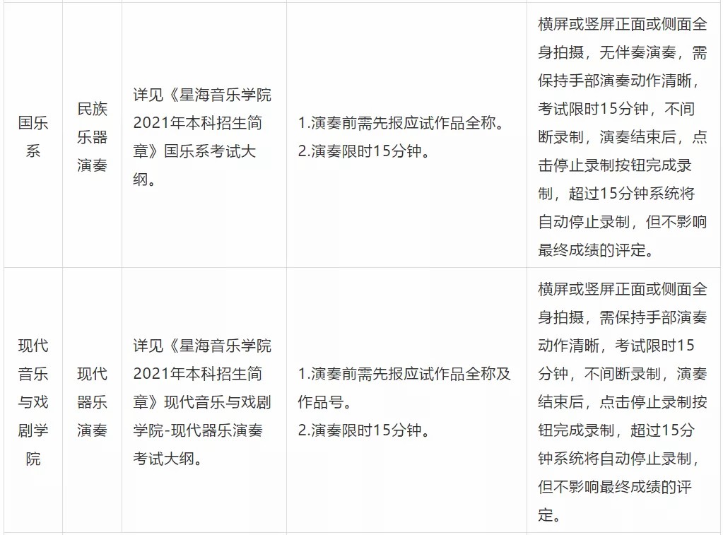 星海音乐学院2021年本科专业视频录制说明