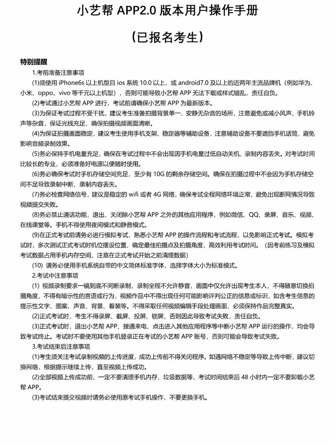 1. 请所有参加视频考试的考生,务必熟悉“星海音乐学院招生办”微信公众号、招生信息网发布的《小艺帮APP2.0版本用户操作指南》。
