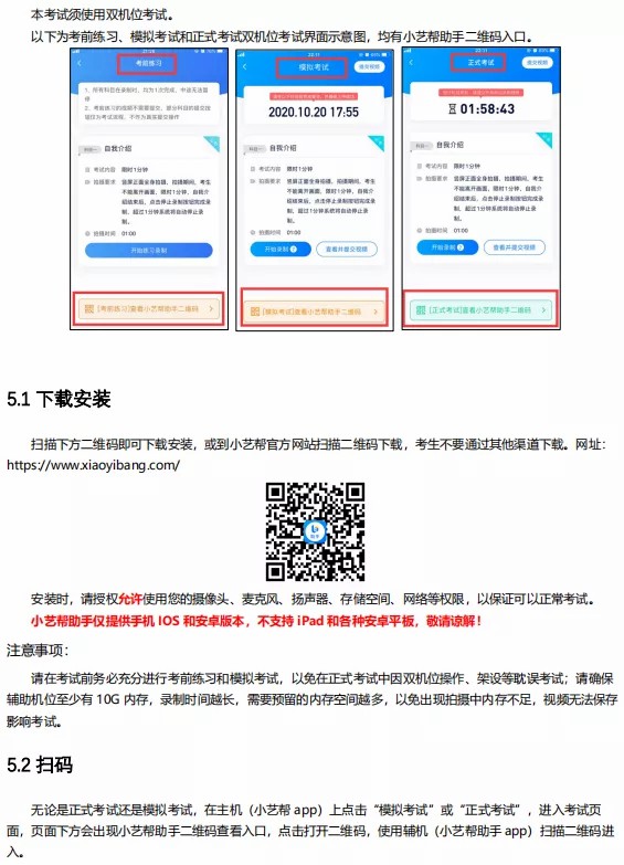 所有参加考试的考生,务必熟悉《“小艺帮”APP 操作说明》。特别提示如下: