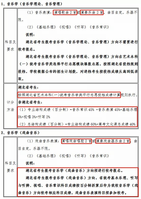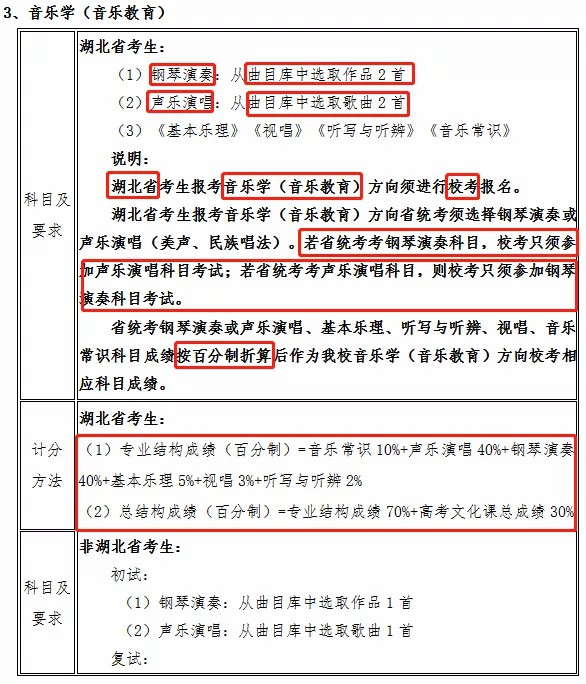 武汉音乐学院分为初复试,音乐表演(指挥除外)、音乐学(音乐教育)省外考生已在年前参加了线上初试,并拿到考试结果,