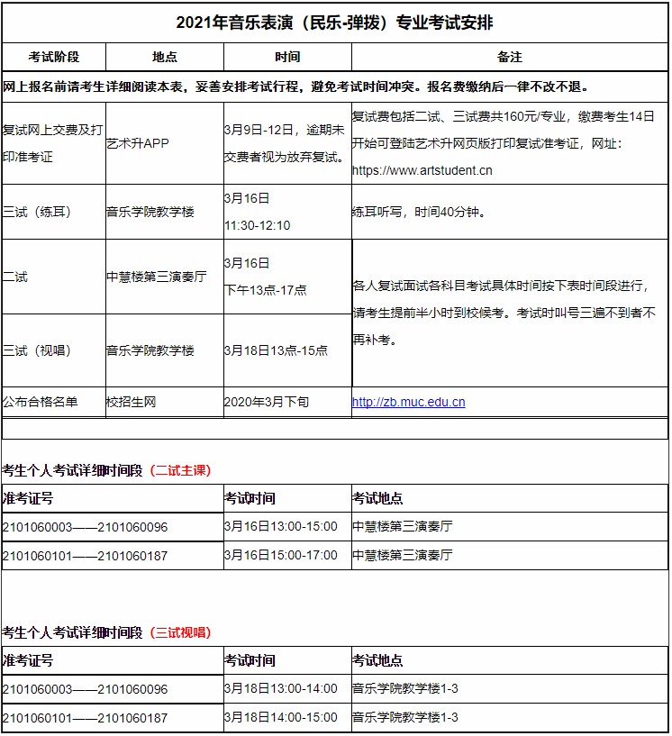 中央民族大学2021年音乐校考复试方案及日程安排