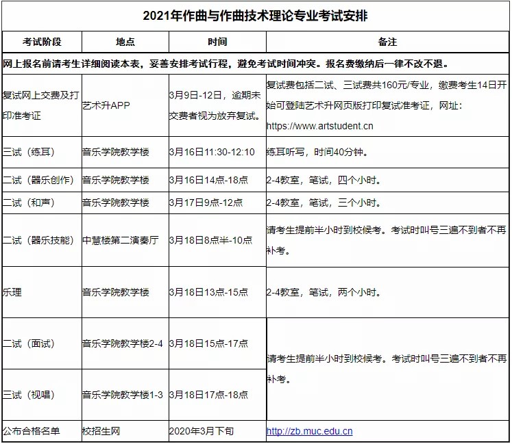 音乐学院2021年现场复试方案及日程安排