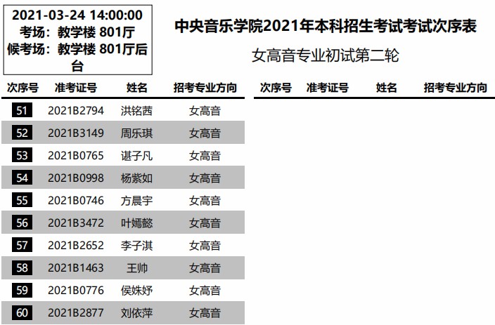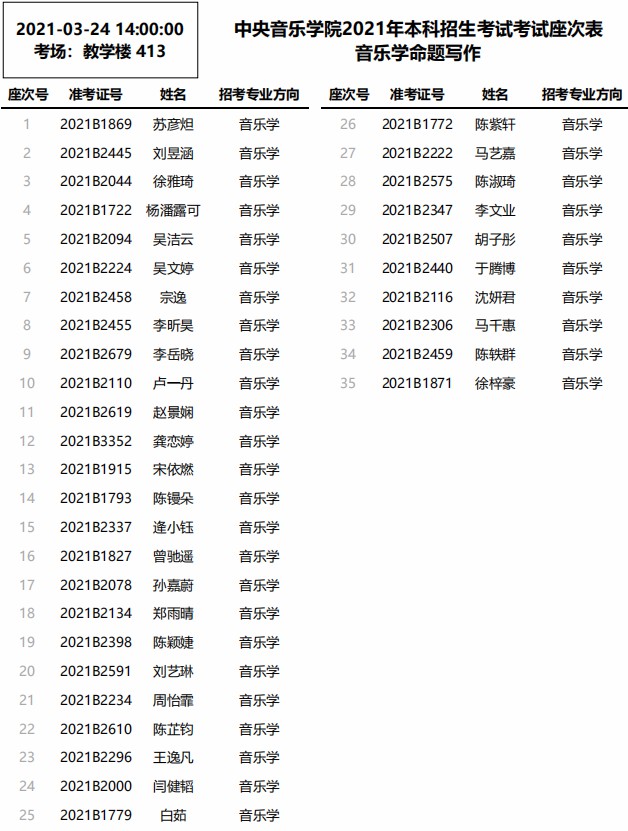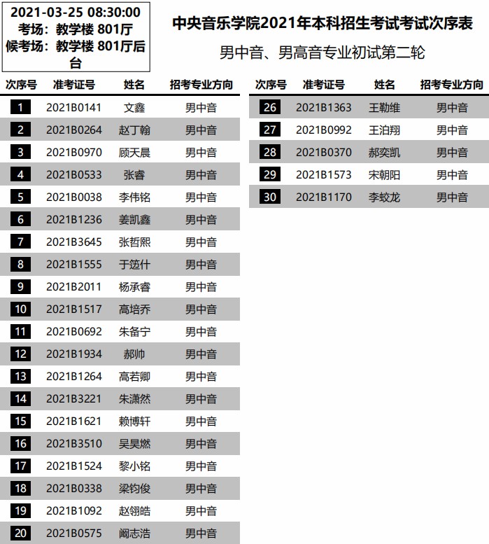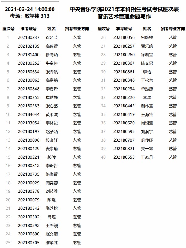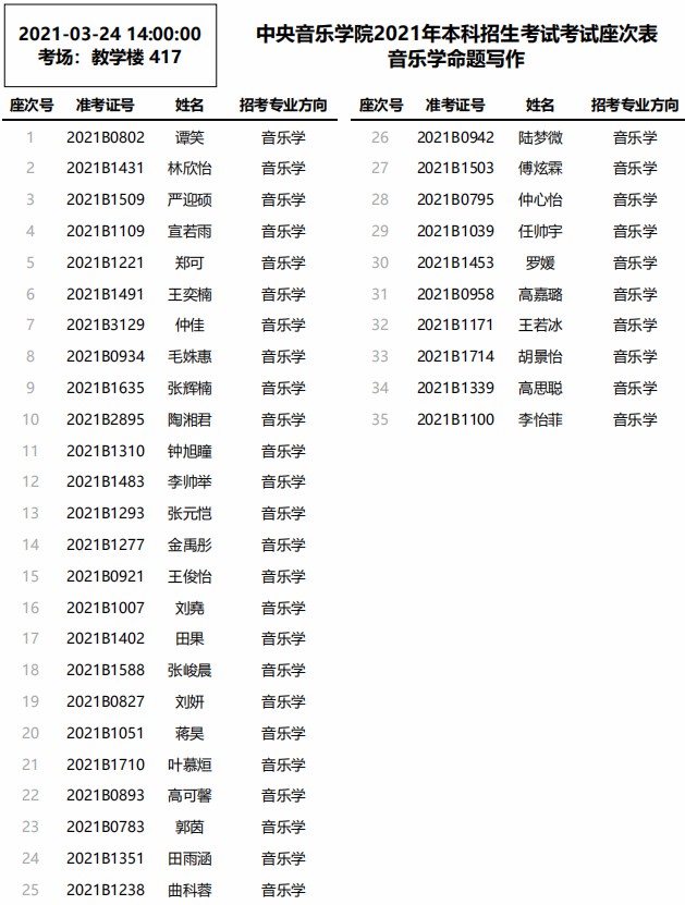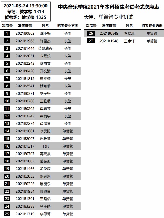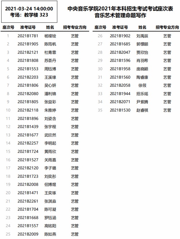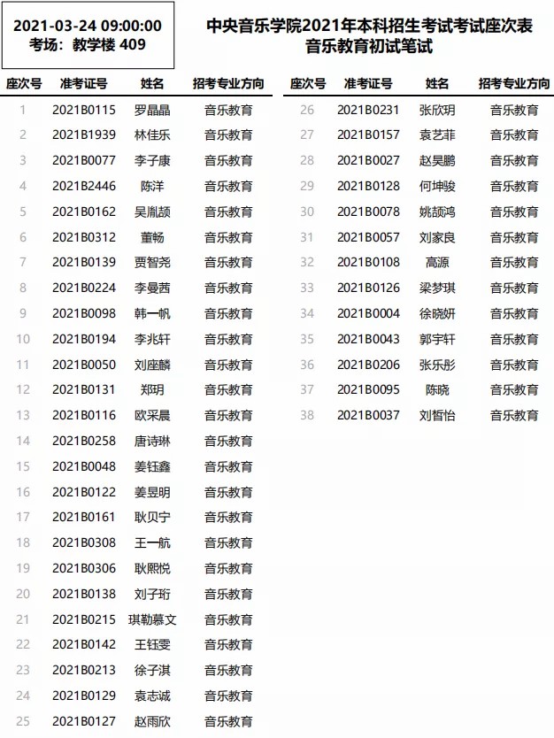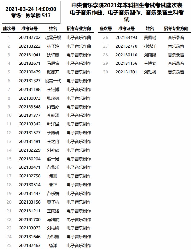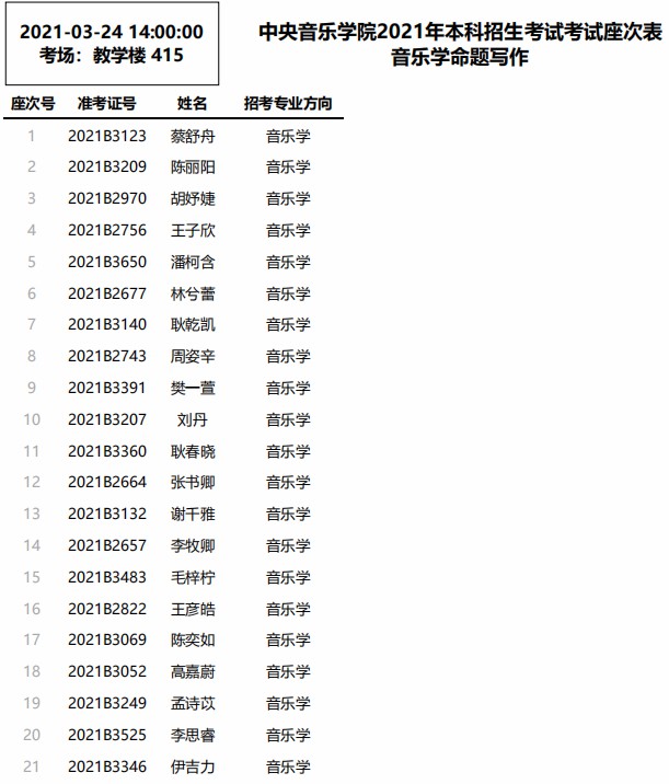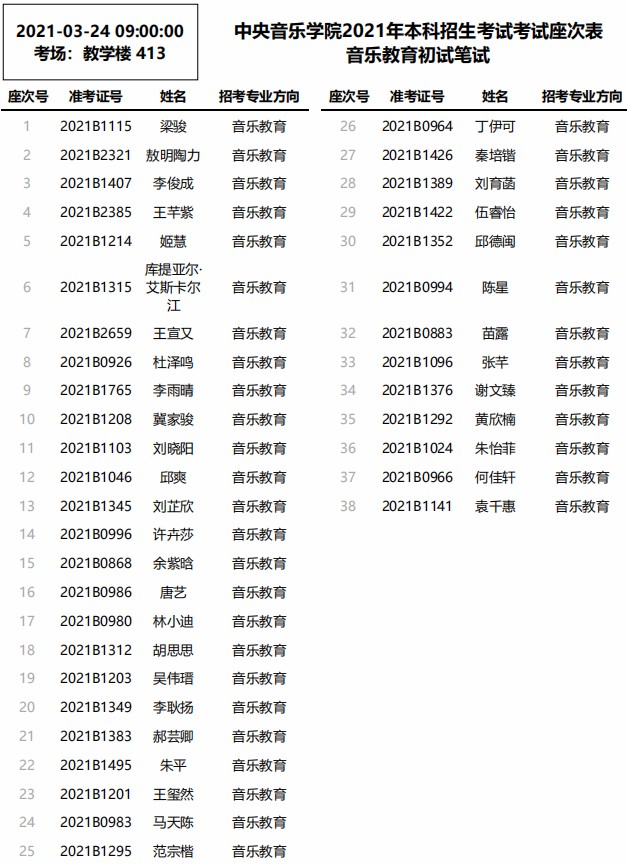 现公布我校作曲系、音乐学系各招考方向初试各科目考场次序表/座次表(详见附件)。视唱练耳招考方向专业笔试(听写)开考即有听辨,迟到者不得进入考场;器乐曲写作、艺术歌曲写作、音乐学招考方向写作、艺术管理招考方向写作考试迟到15分钟者不得进入考场。NPB音乐培训_音乐艺考培训学校-