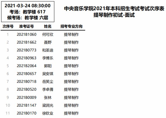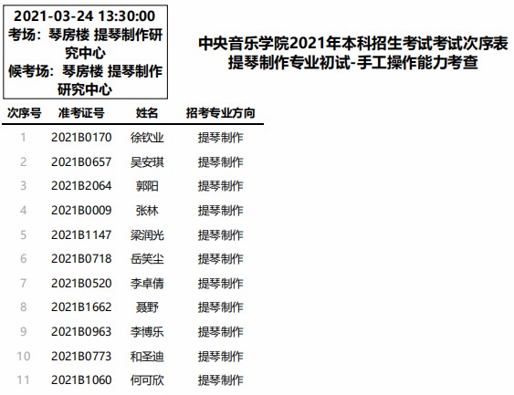 现公布我校提琴制作招考方向初试各科目考场次序表/座次表。初试-面试的考生请于开考前半小时达到指定候考场,按照考场顺序依次等候考试;手工操作能力考查的考试时长为四个小时,请所有考生于开考前半小时到达提琴制作研究中心(学校西门办公楼二层206)准备考试。NPB音乐培训_音乐艺考培训学校-