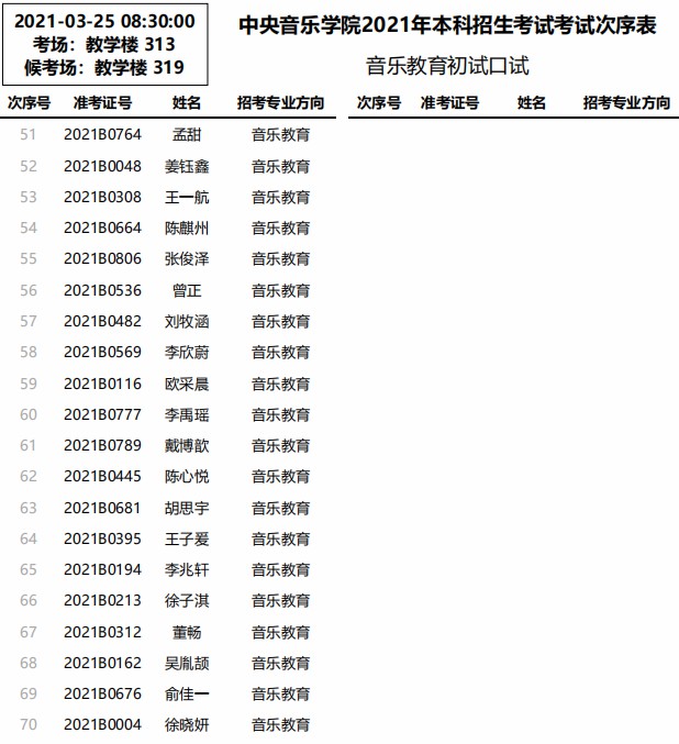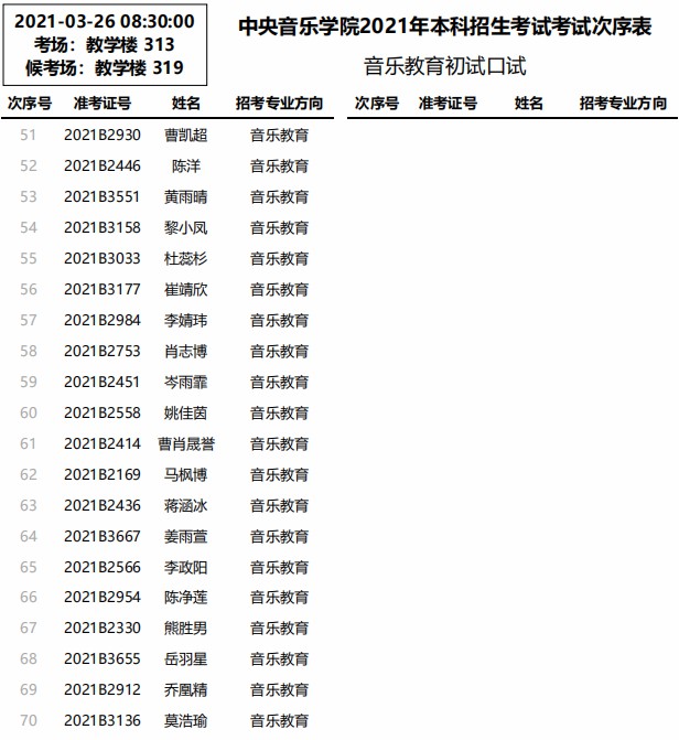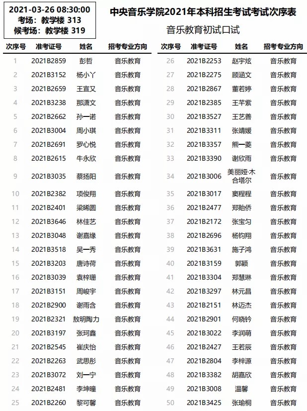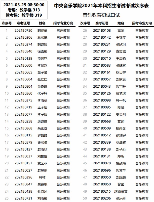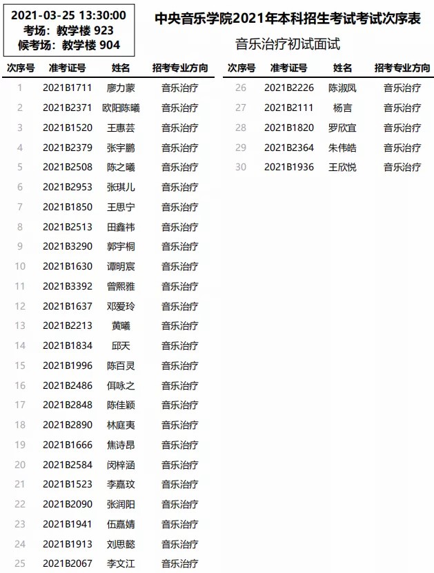 现公布我校音乐教育招考方向初试各科目考场次序表/座次表(详见附件)。初试笔试开考即有听辨,迟到者不得进入考场。参加上午初试口试的考生请于08:30前务必到达候考场备考,迟到者视为弃考;参加下午初试口试的考生请于14:00前务必到达候考场备考,迟到者视为弃考。NPB音乐培训_音乐艺考培训学校-