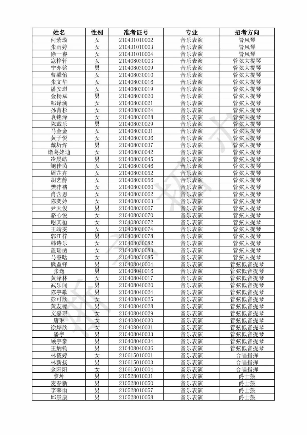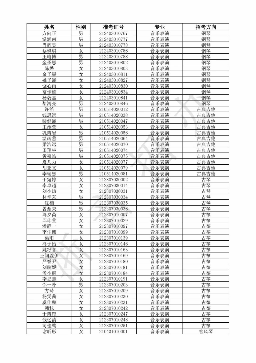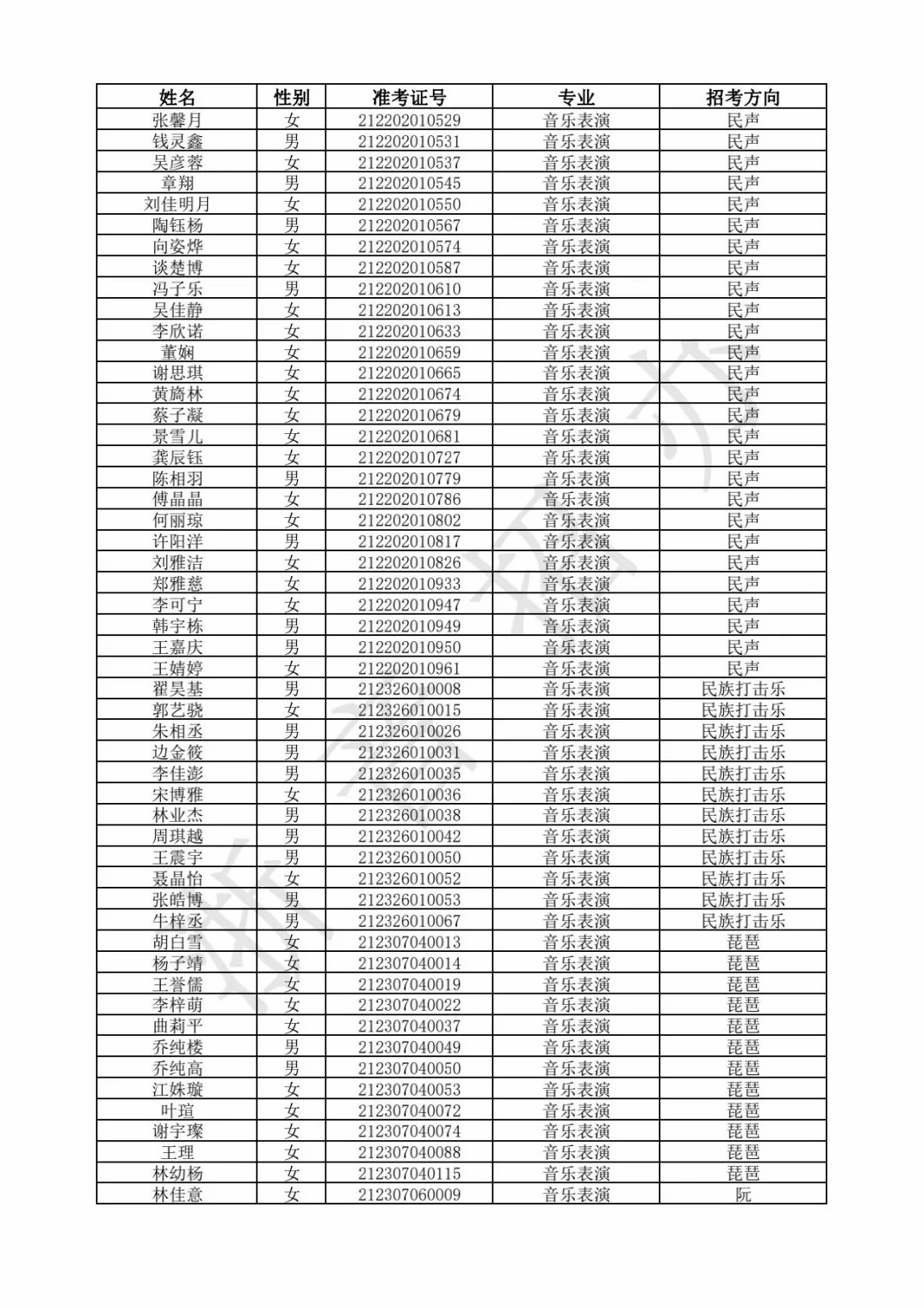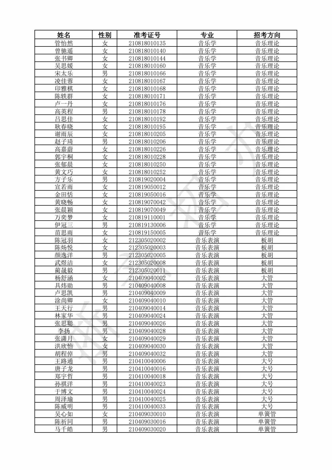 浙江音乐学院2021年本科专业合格名单及合格线公布