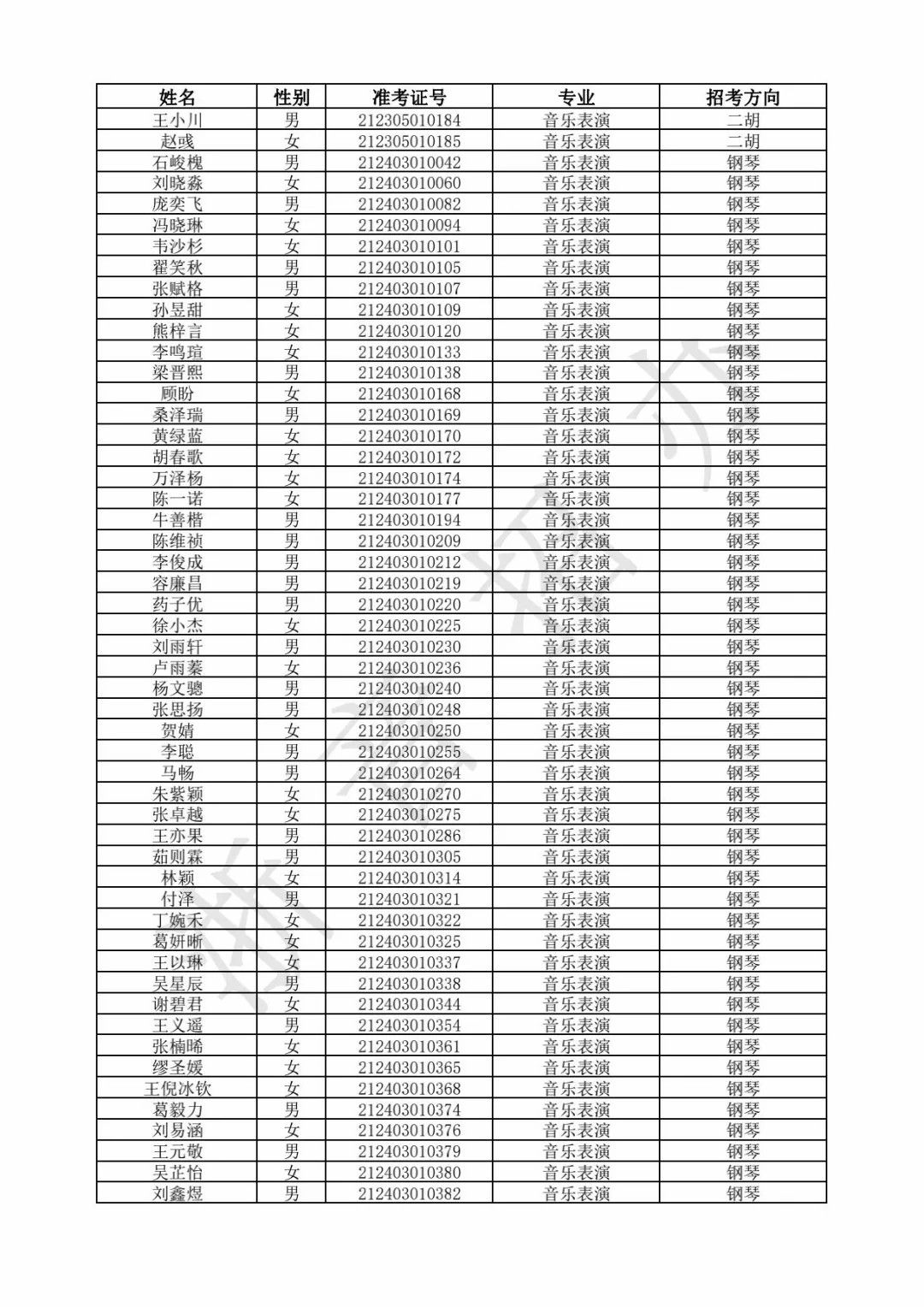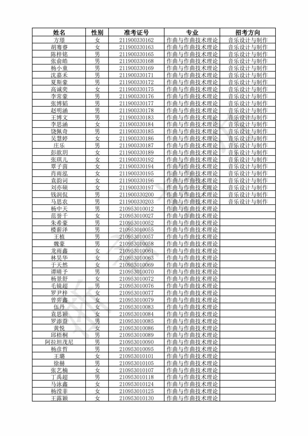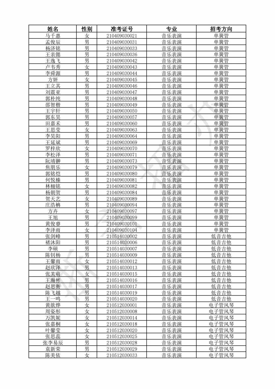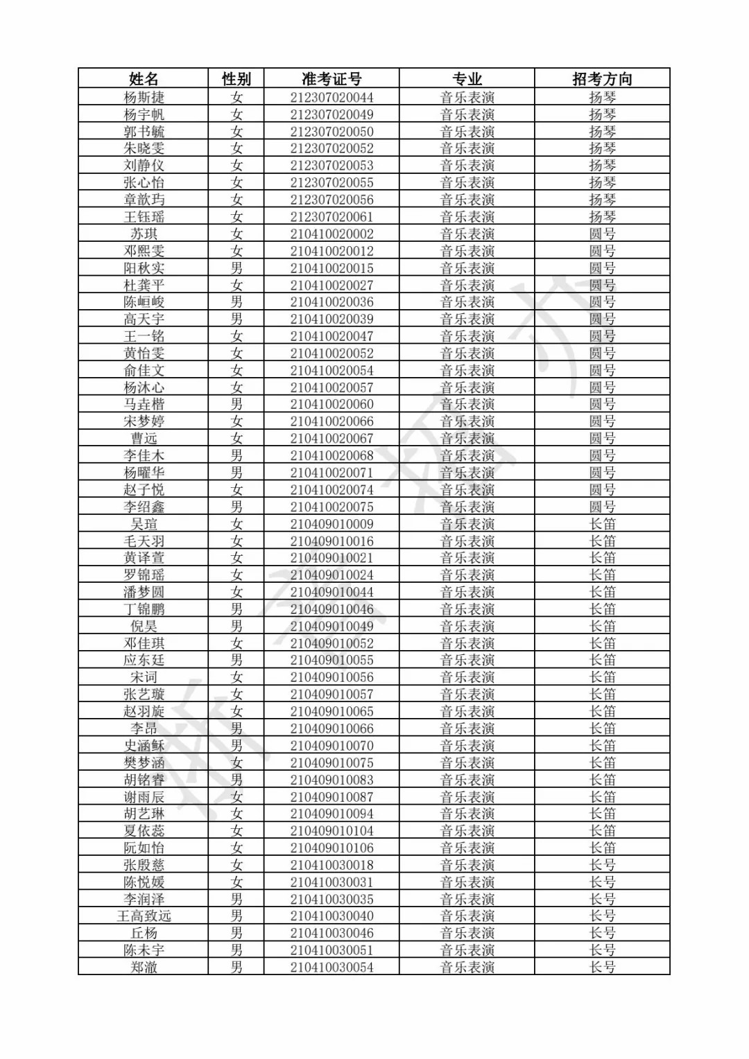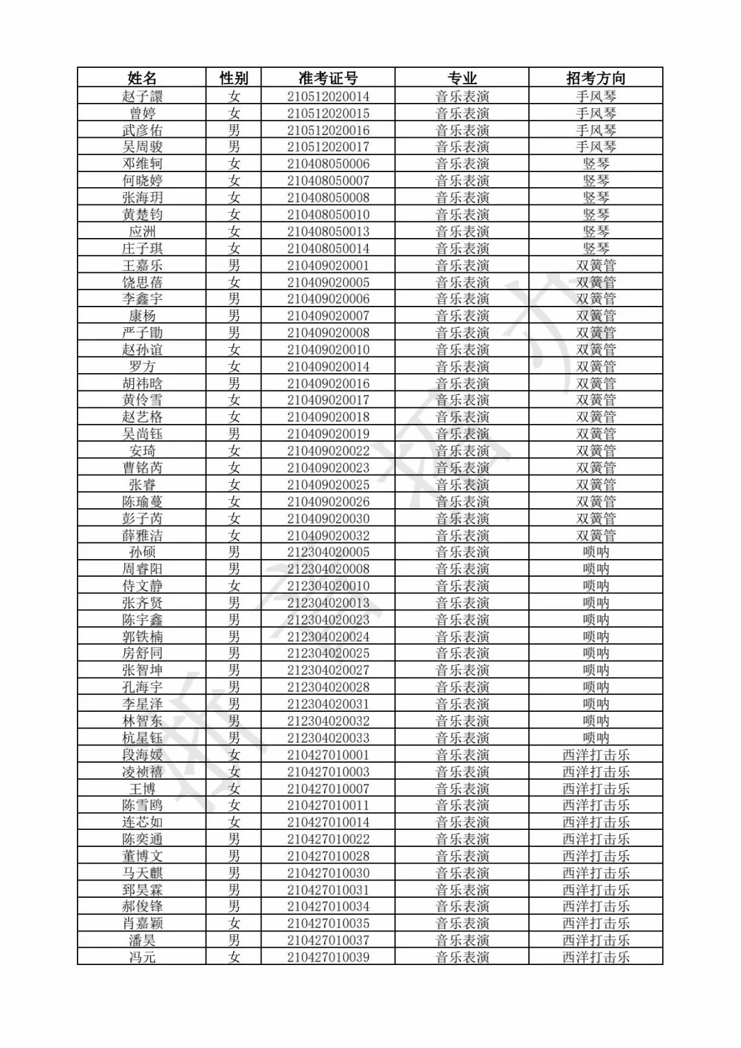 浙江音乐学院2021年本科专业合格名单及合格线公布