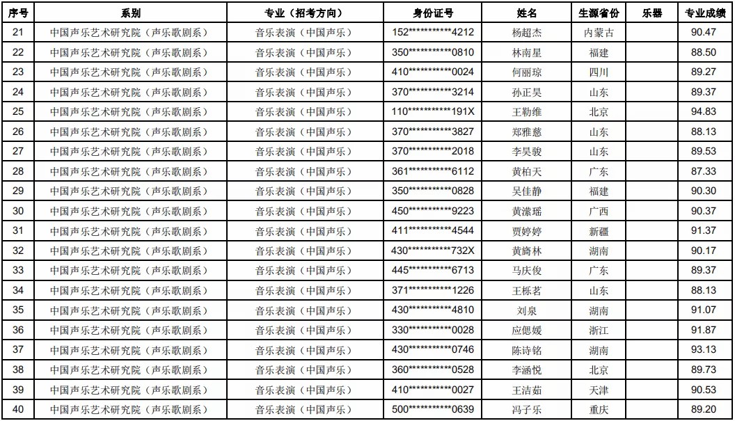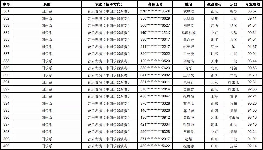 重磅!中国音乐学院2021年本科专业合格名单公布