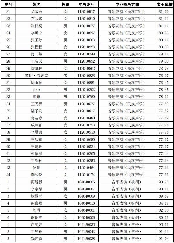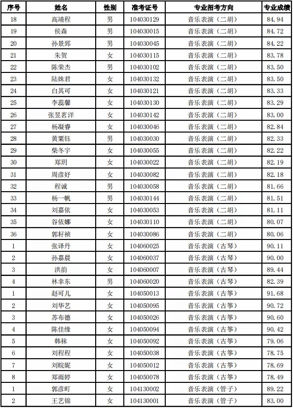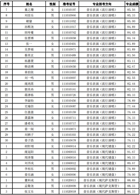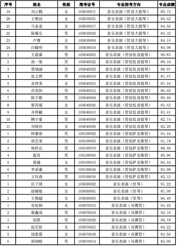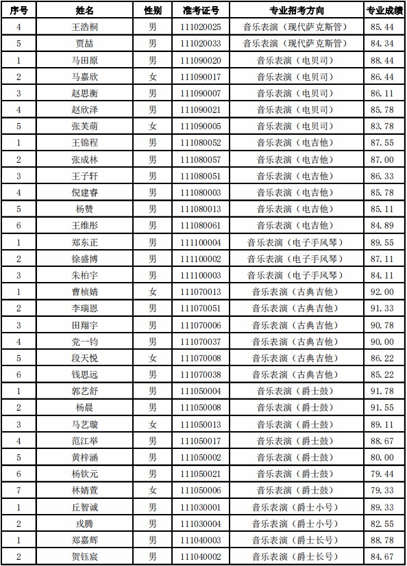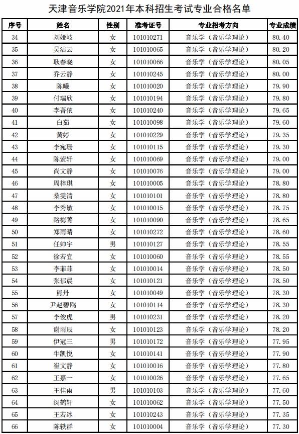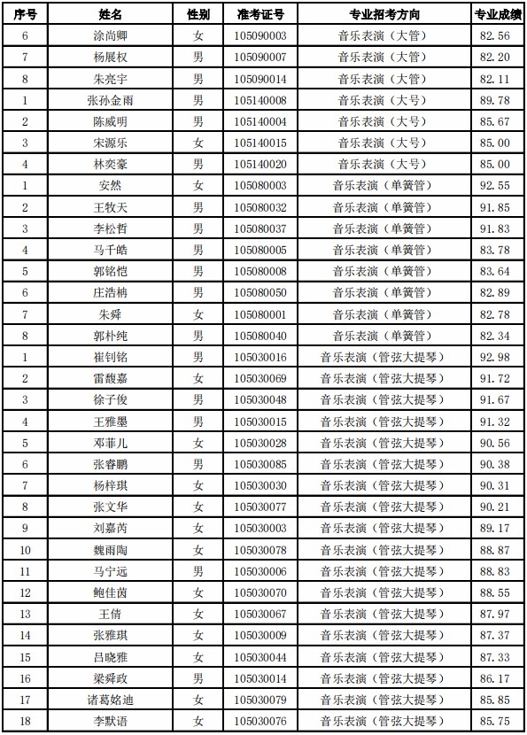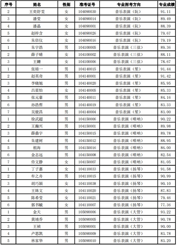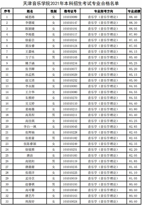 根据《天津音乐学院2021年本科招生简章》要求,现将天津音乐学院2021年本科招生专业校考合格名单公布如下。我院不再寄发专业考试合格证,考生也无需另行打印。如有疑问,请于4月21日前与招生办公室取得联系,逾期不再受理相关事宜。kxP音乐培训_音乐艺考培训学校-