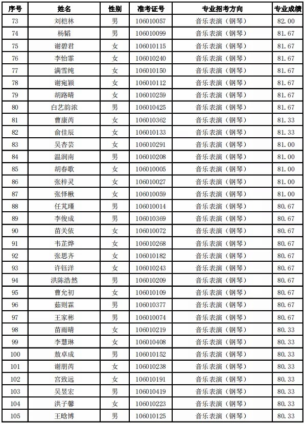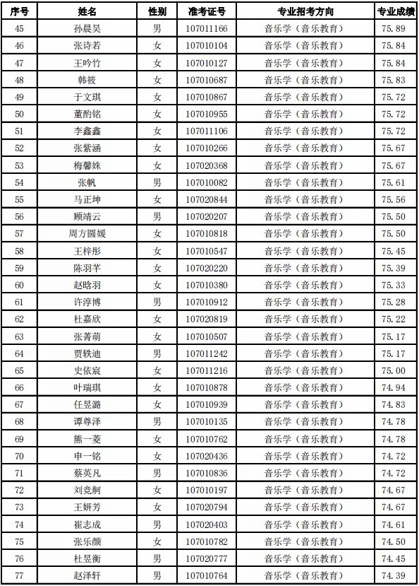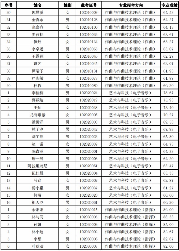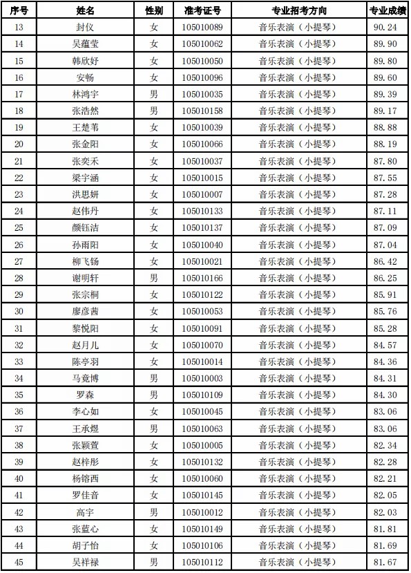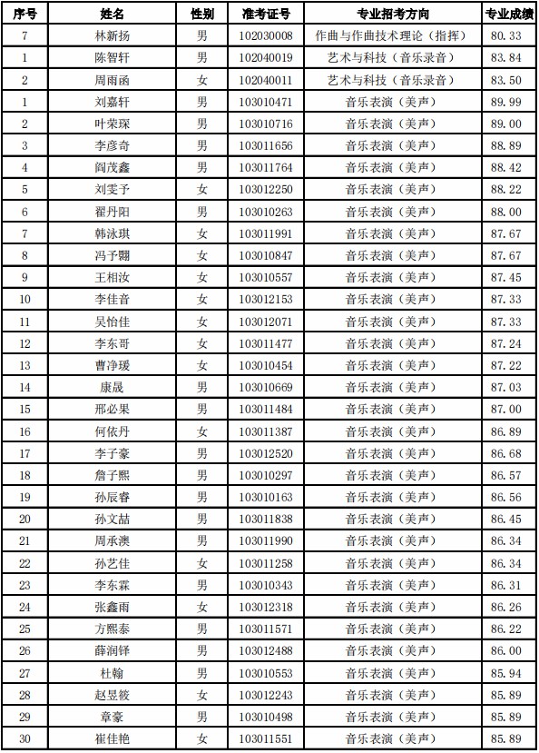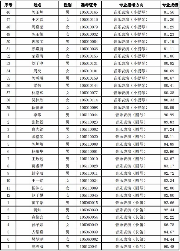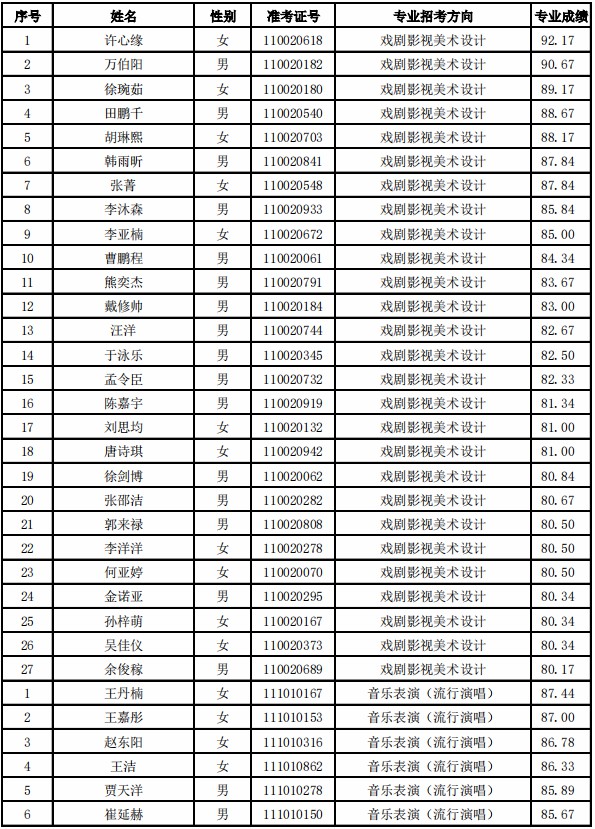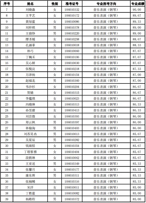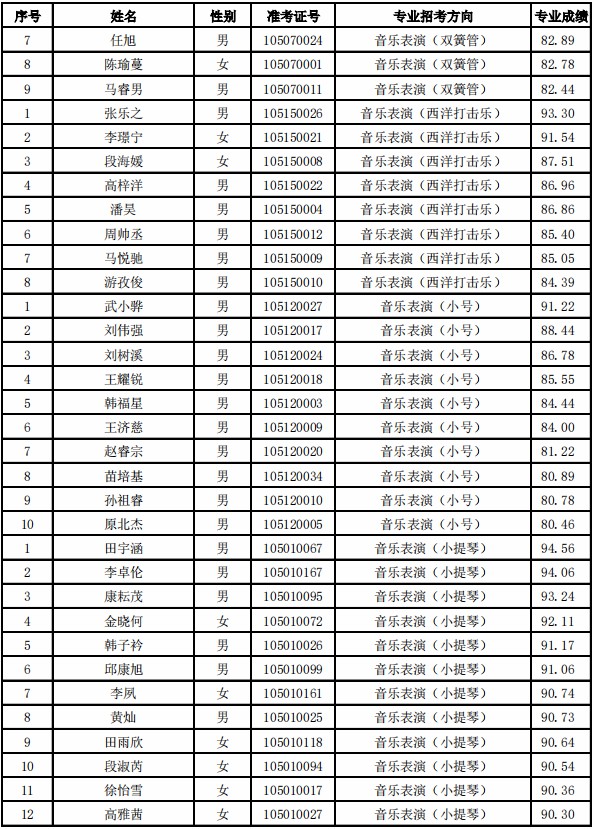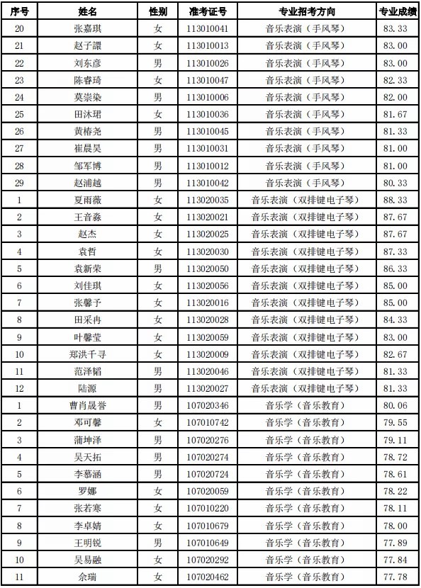 根据《天津音乐学院2021年本科招生简章》要求,现将天津音乐学院2021年本科招生专业校考合格名单公布如下。我院不再寄发专业考试合格证,考生也无需另行打印。如有疑问,请于4月21日前与招生办公室取得联系,逾期不再受理相关事宜。kxP音乐培训_音乐艺考培训学校-