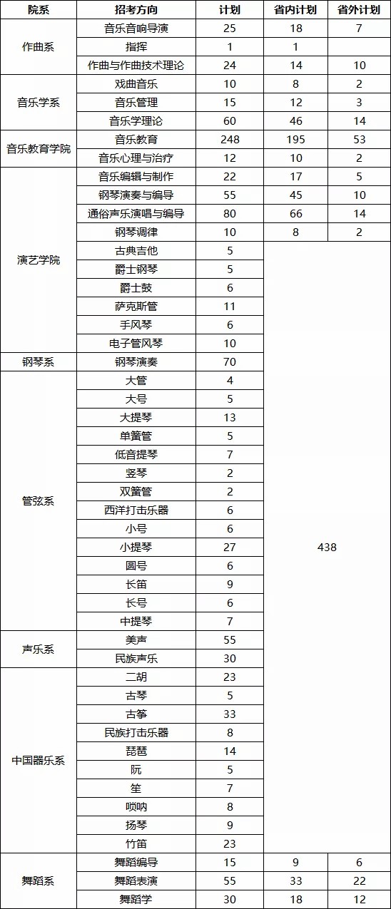 2.音乐教育、音乐学理论、音乐管理、通俗声乐演唱与编导、钢琴演奏与编导方向的省内外计划待正式计划下达后另行发布。