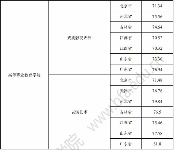 2021年艺术类专业校考合格分数线