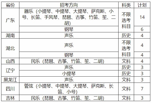 音乐表演专业面向江苏、浙江、山东、湖南4个省招收本科生。