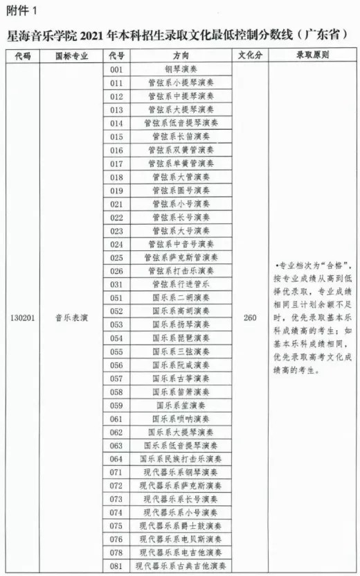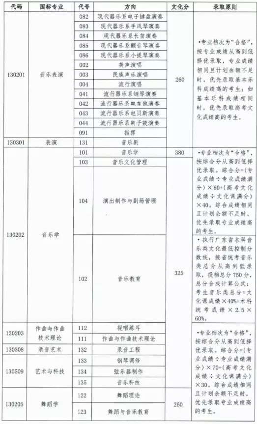 较2020年变化:广东省内,音乐表演上涨15分。音乐教育上涨75分。音乐学上涨25分。作曲与作曲技术理论上涨40分。录音艺术上涨40分。艺术与科技上涨40分。演出制作与剧场管理上涨40分。音乐文化管理上涨40分。