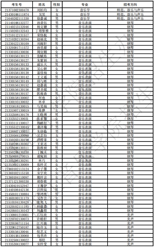 浙江音乐学院2021年全日制本科招生各专业(综合)拟录取低成绩、拟录取名单予以公布。7月下旬,院校将按上级招生主管部门审核通过的正式录取名单办理录取手续,并寄发录取通知书。