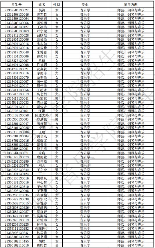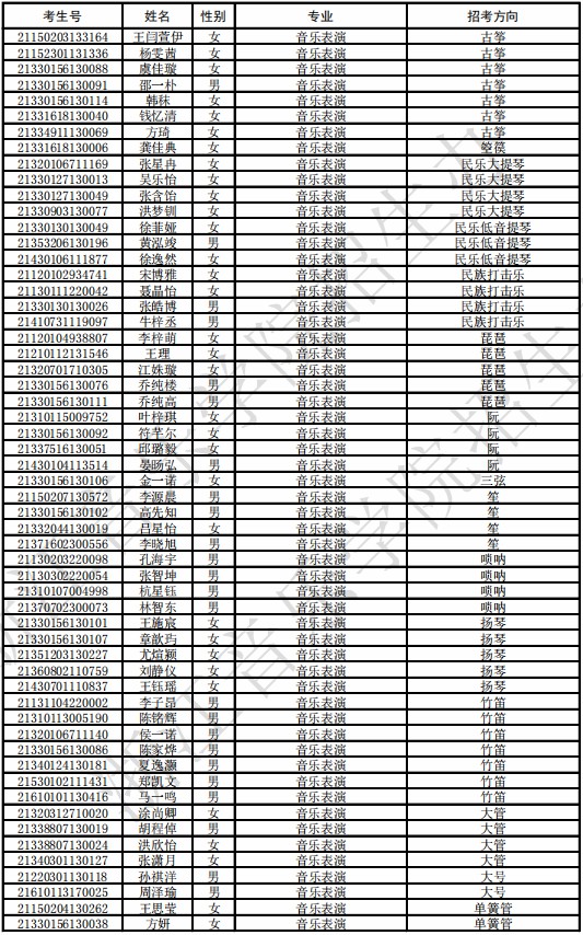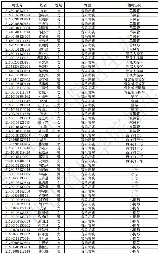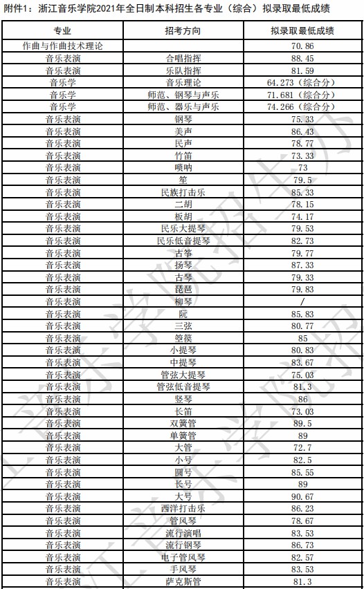 浙江音乐学院2021年本科专业拟录取名单及各专业低成绩