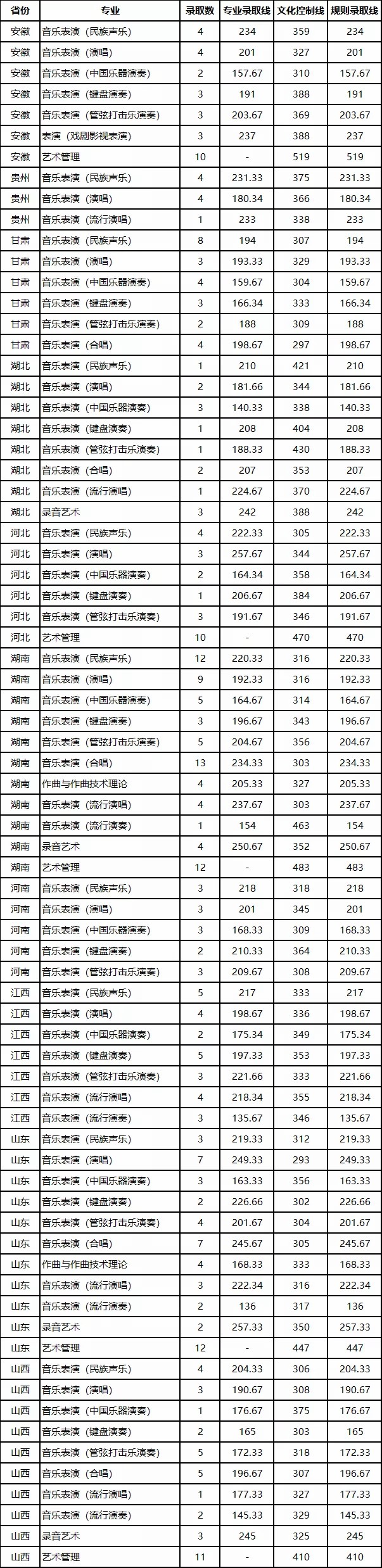 2.艺术管理专业在河南省、湖北省参加普通类批次录取,录取分数线待录取结束后公布。