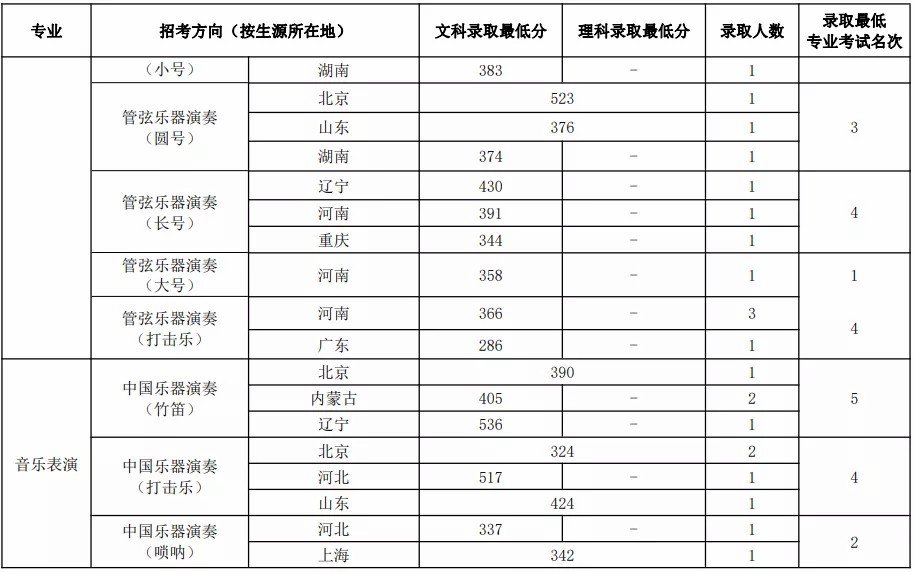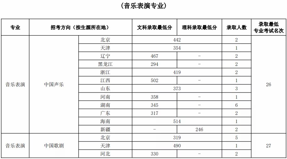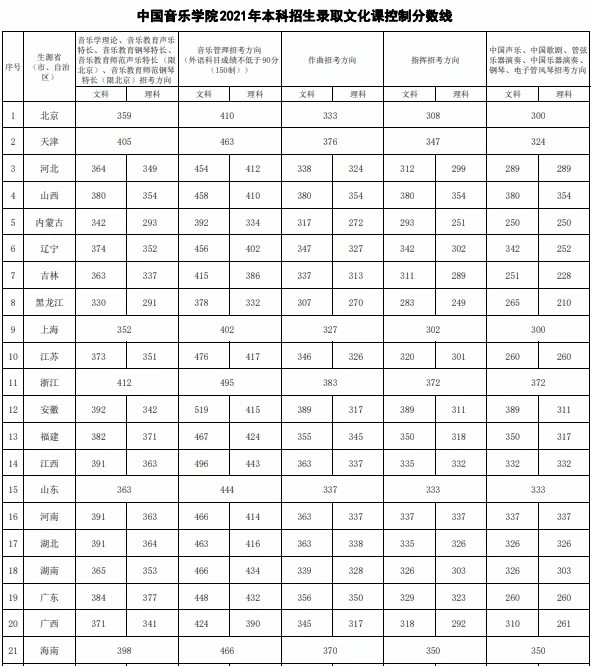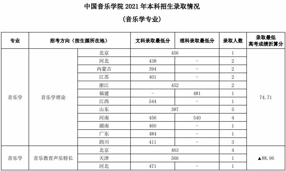 下面一起来看下中国音乐学院2021年本科招生录取情况: