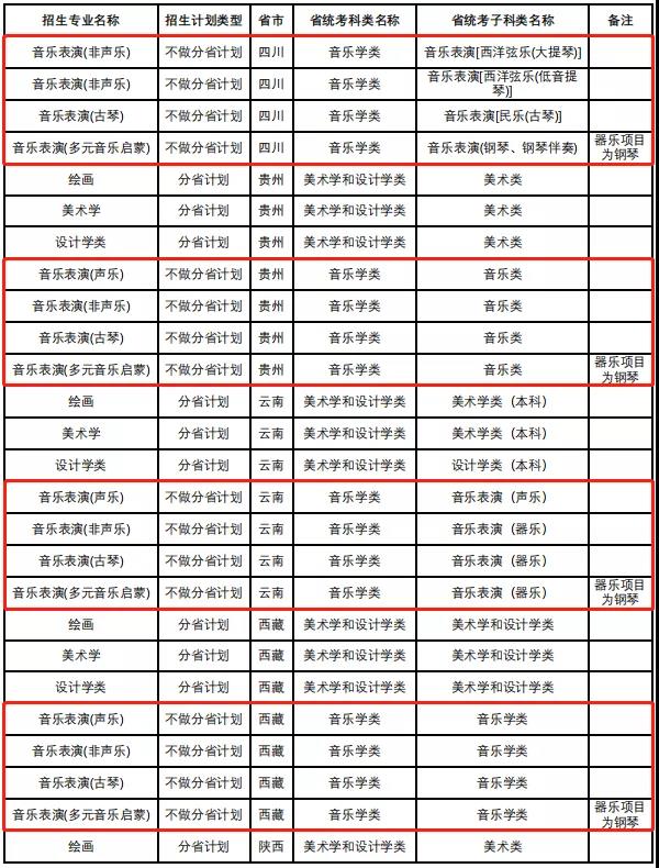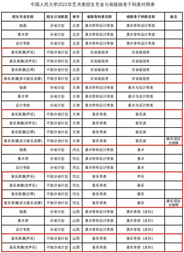 校考 | 中国人民大学2022年音乐类专业省级统考子科类对照表