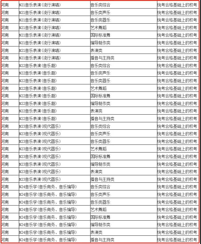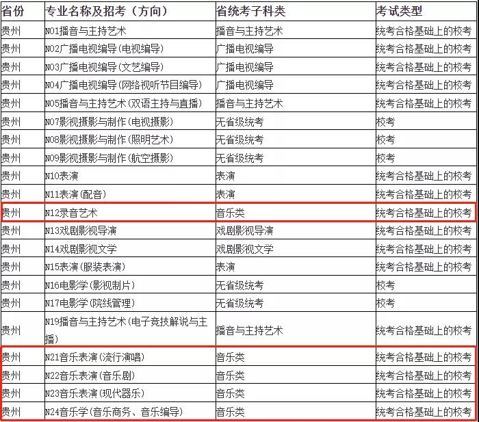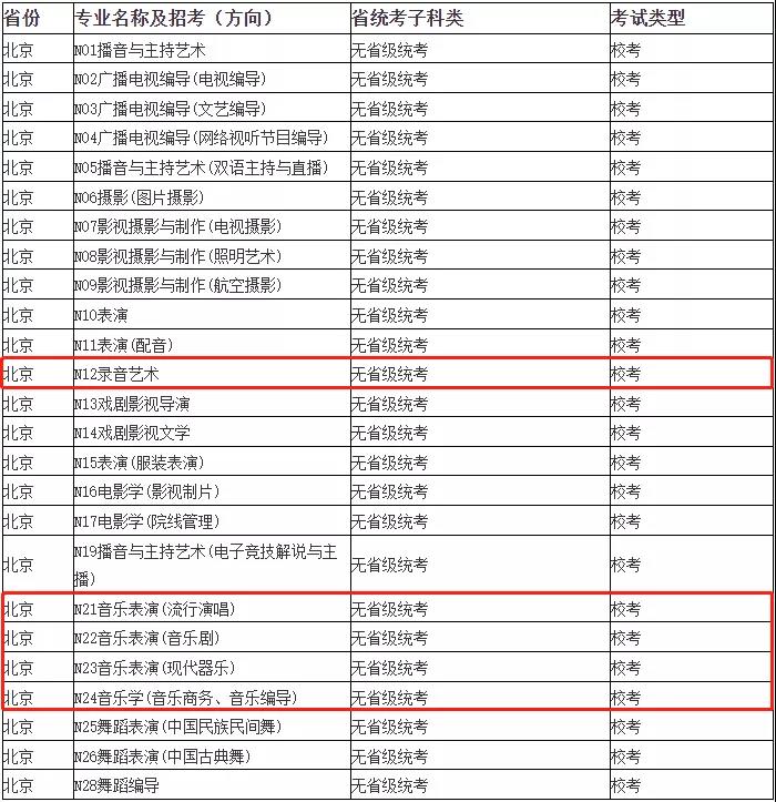 以下未列出的艺术类专业无需参加校考,承认生源省份相应省级统考成绩。高考填报志愿时,根据学校在该省的艺术类专业及计划情况填报志愿即可。