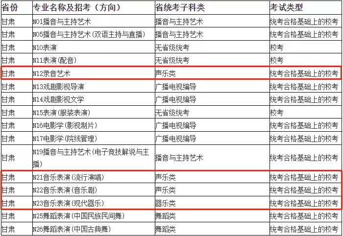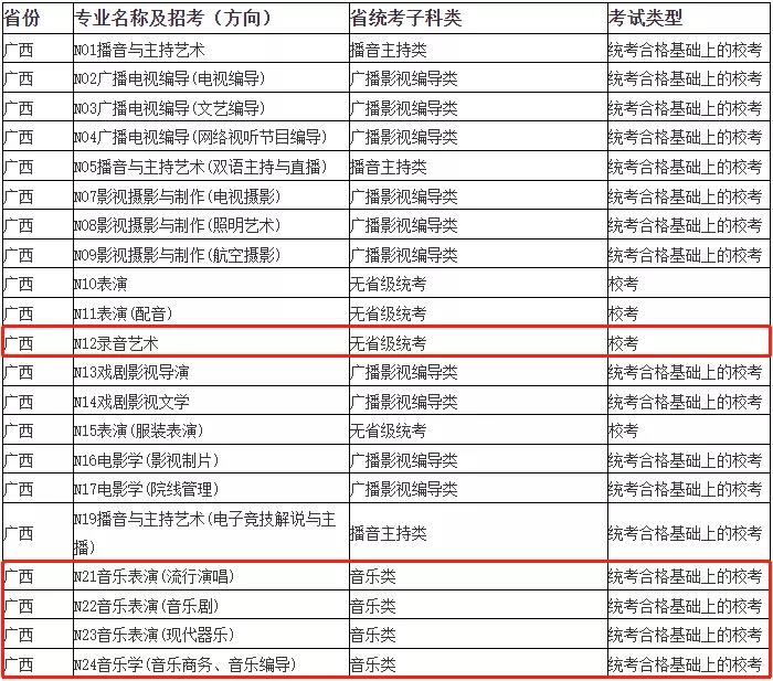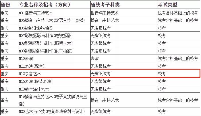 南京传媒学院2022年艺术类校考专业与各省级艺术类统考子科类对照
