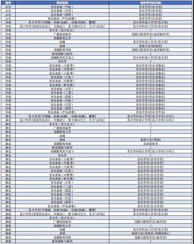 根据《教育部关于进一步加强和改进普通高等学校艺术类专业考试招生工作的指导意见》(教学〔2021〕3号)和《教育部办公厅关于做好2022年普通高等学校部分特殊类型招生工作的通知》(教学厅〔2021〕7号)等文件要求,现公布我校2022年艺术类本科专业对应各省统考科类要求,具体详见附件。