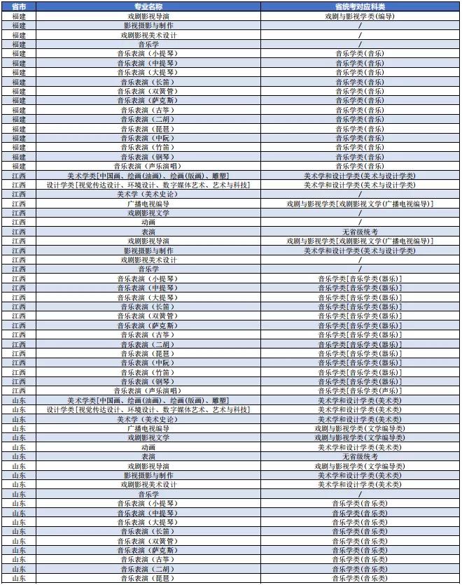 上海大学2022年艺术类本科专业对应各省统考科类要求