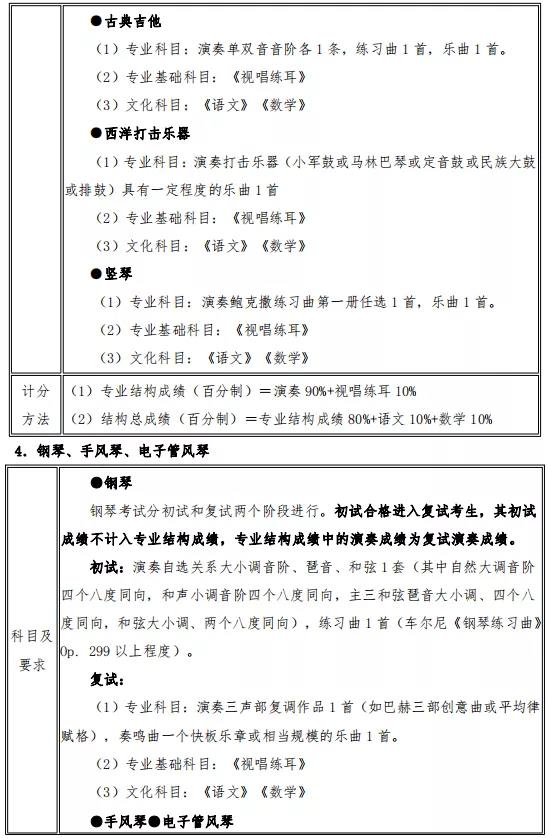 校考 | 武汉音乐学院附中2022年招生专业考试内容