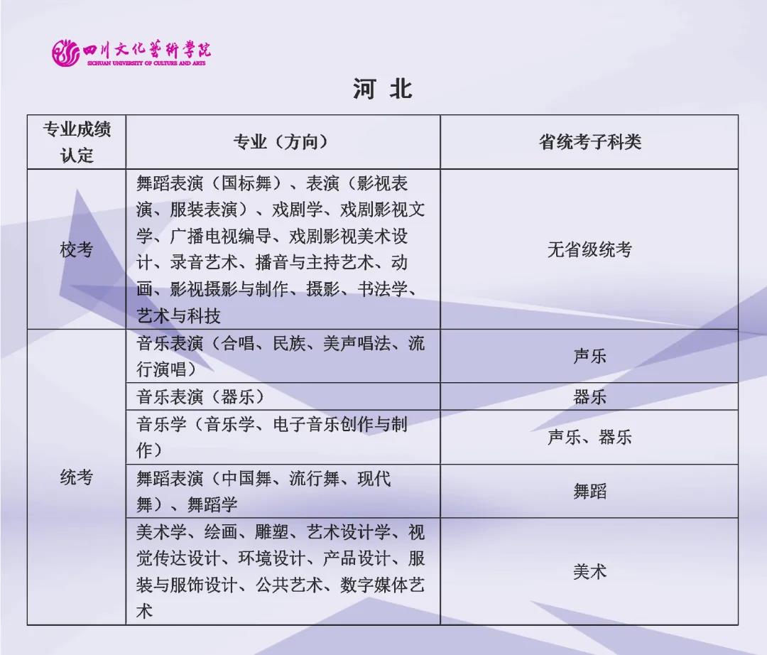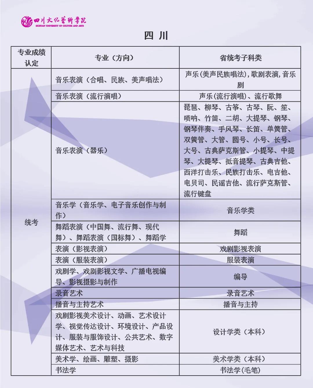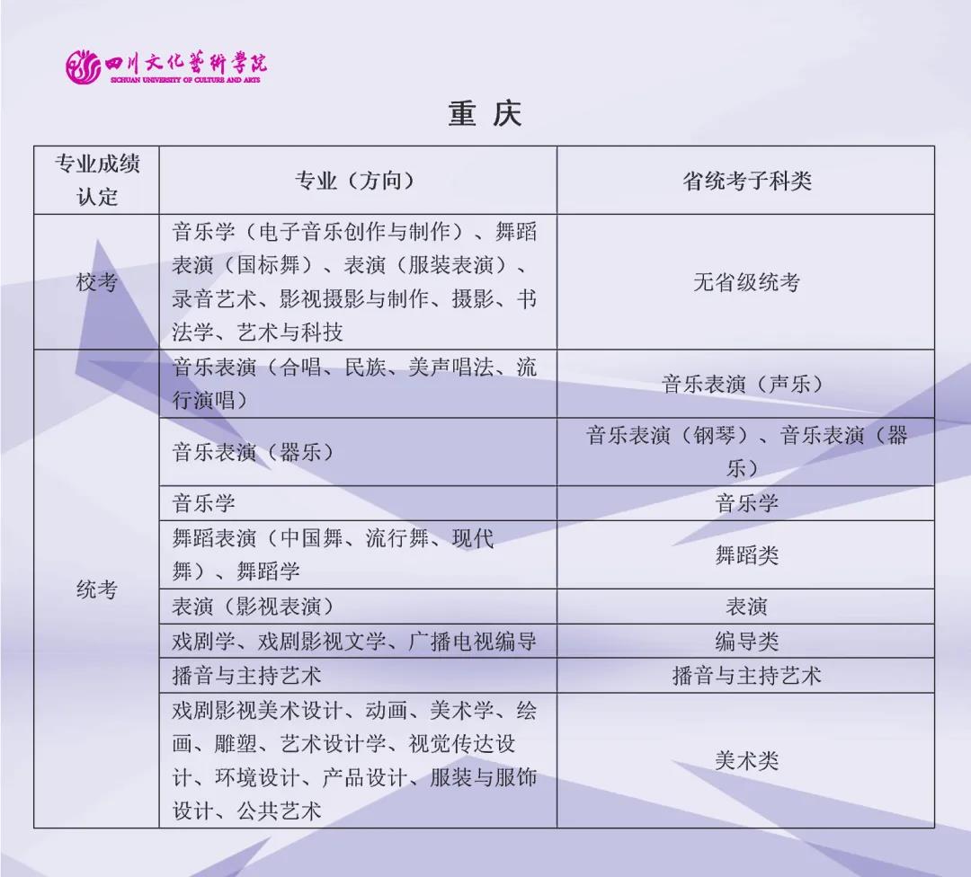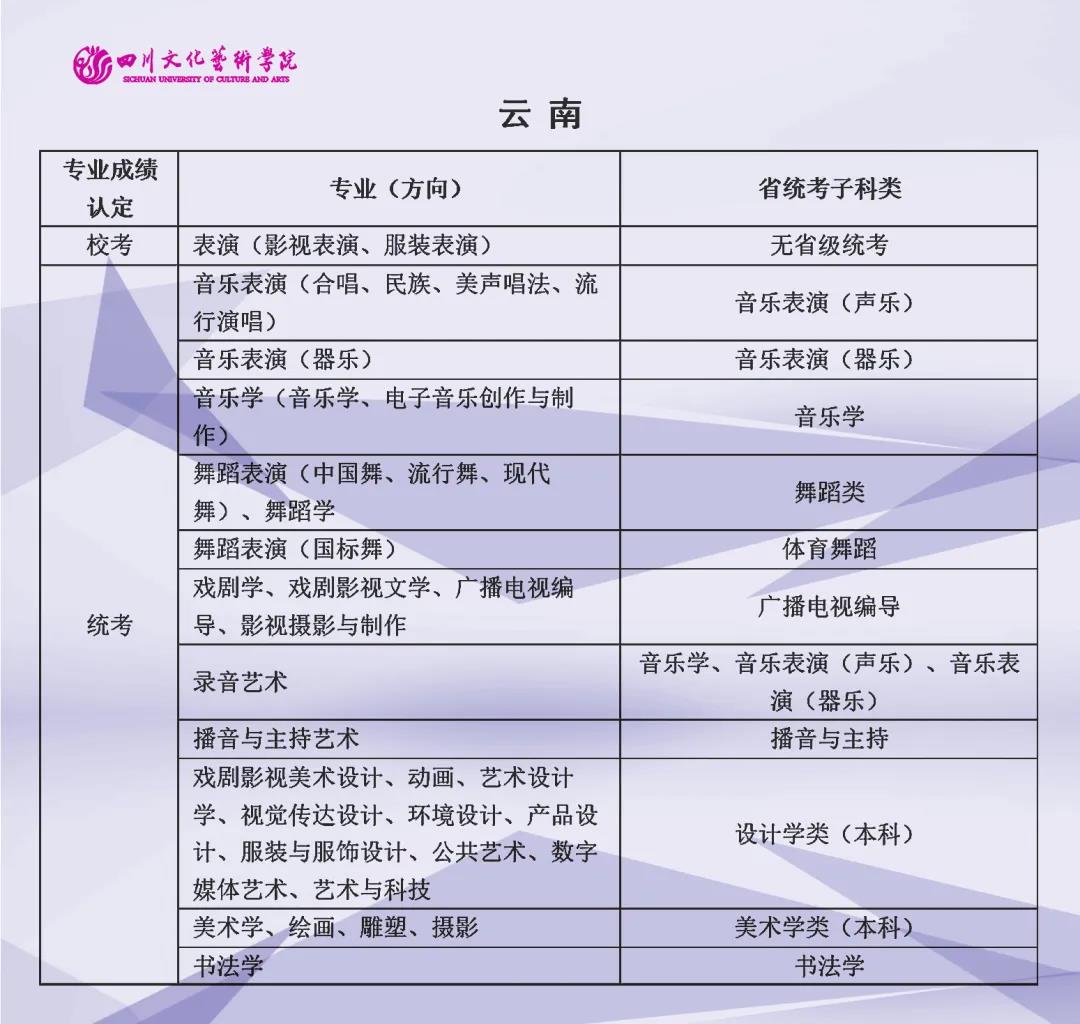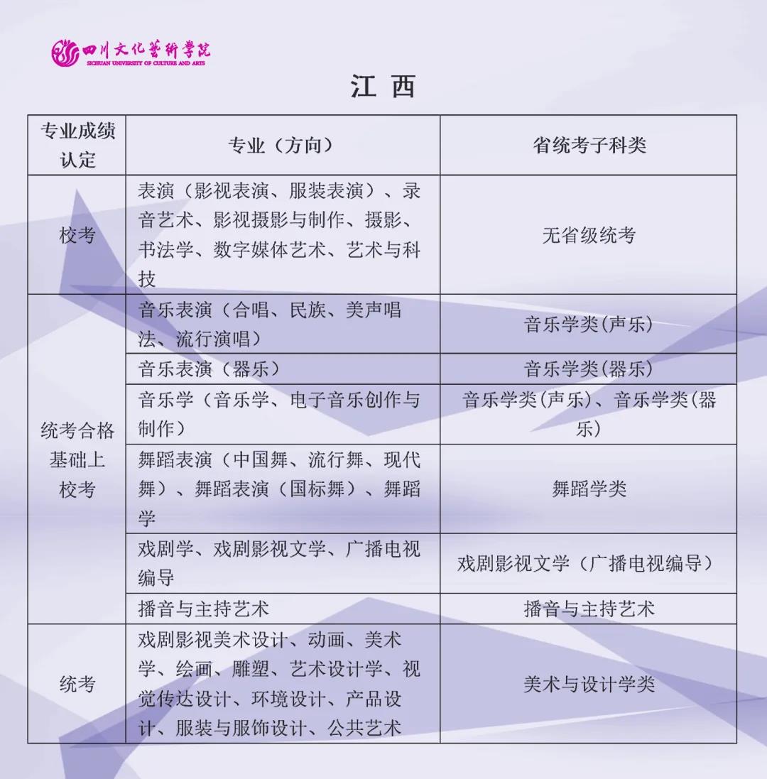 校考 | 四川文化艺术学院2022年艺术类专业与省级统考子科类对照表