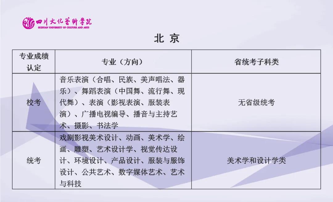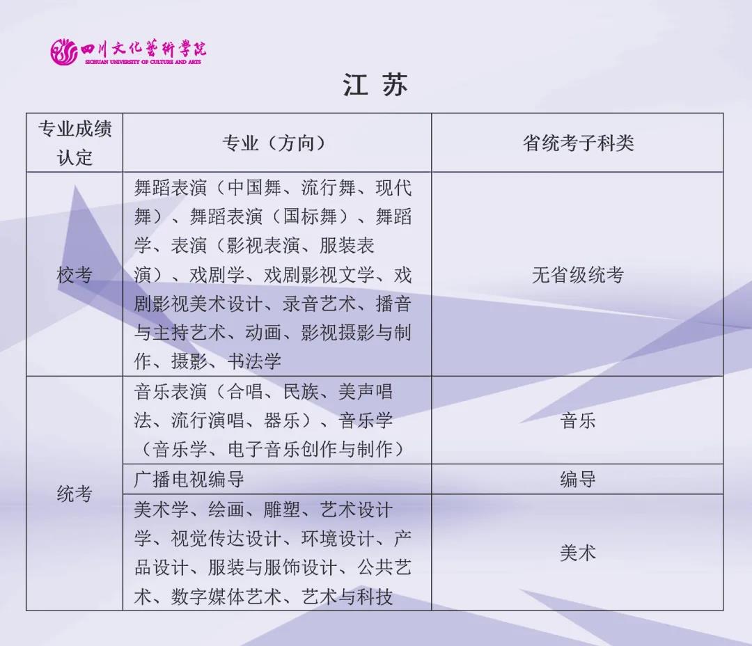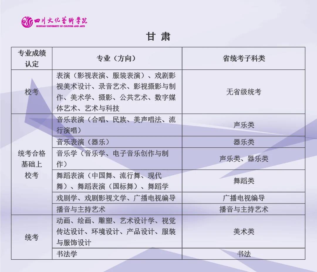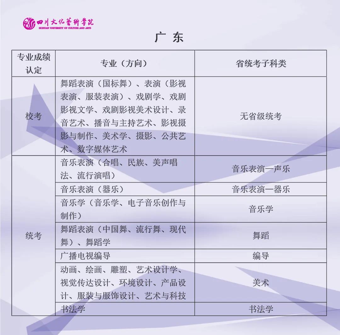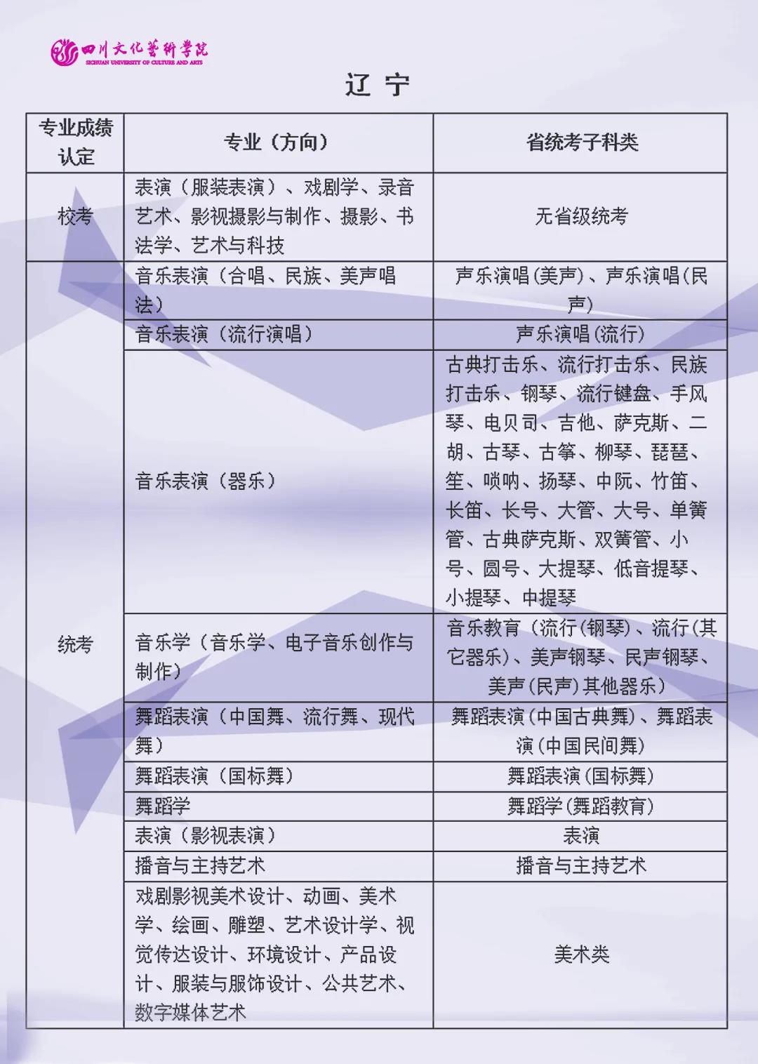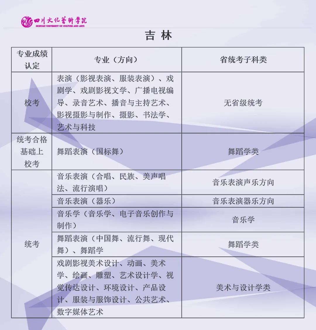 校考 | 四川文化艺术学院2022年艺术类专业与省级统考子科类对照表
