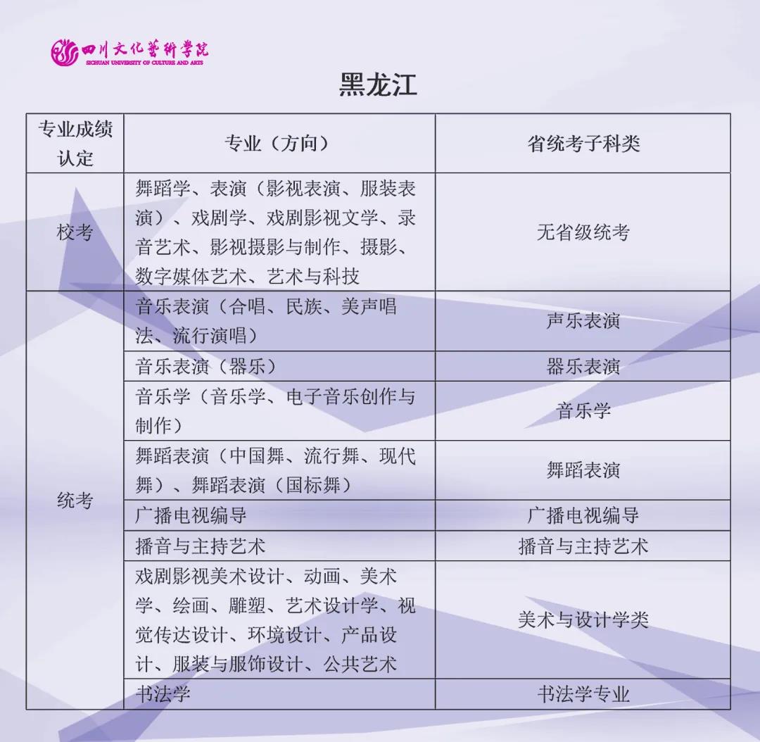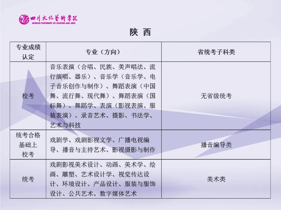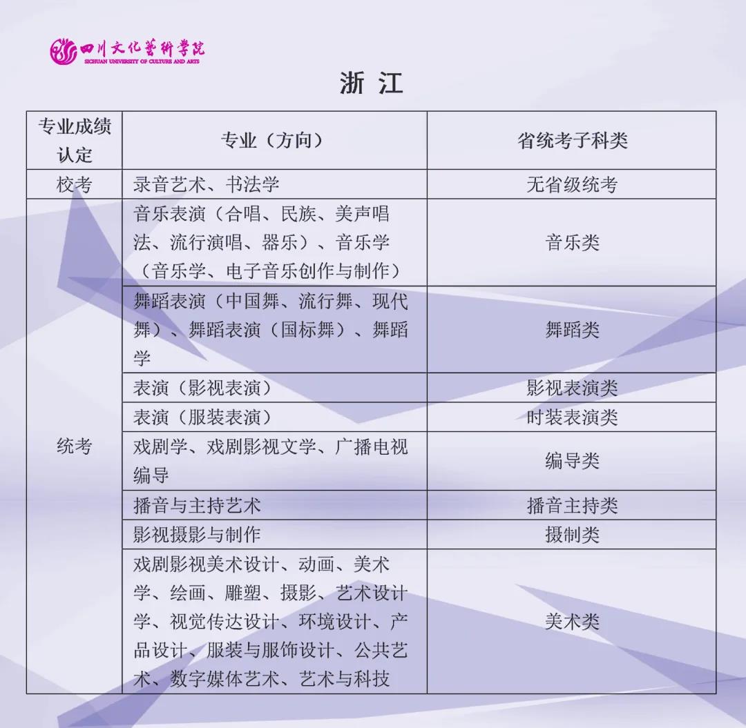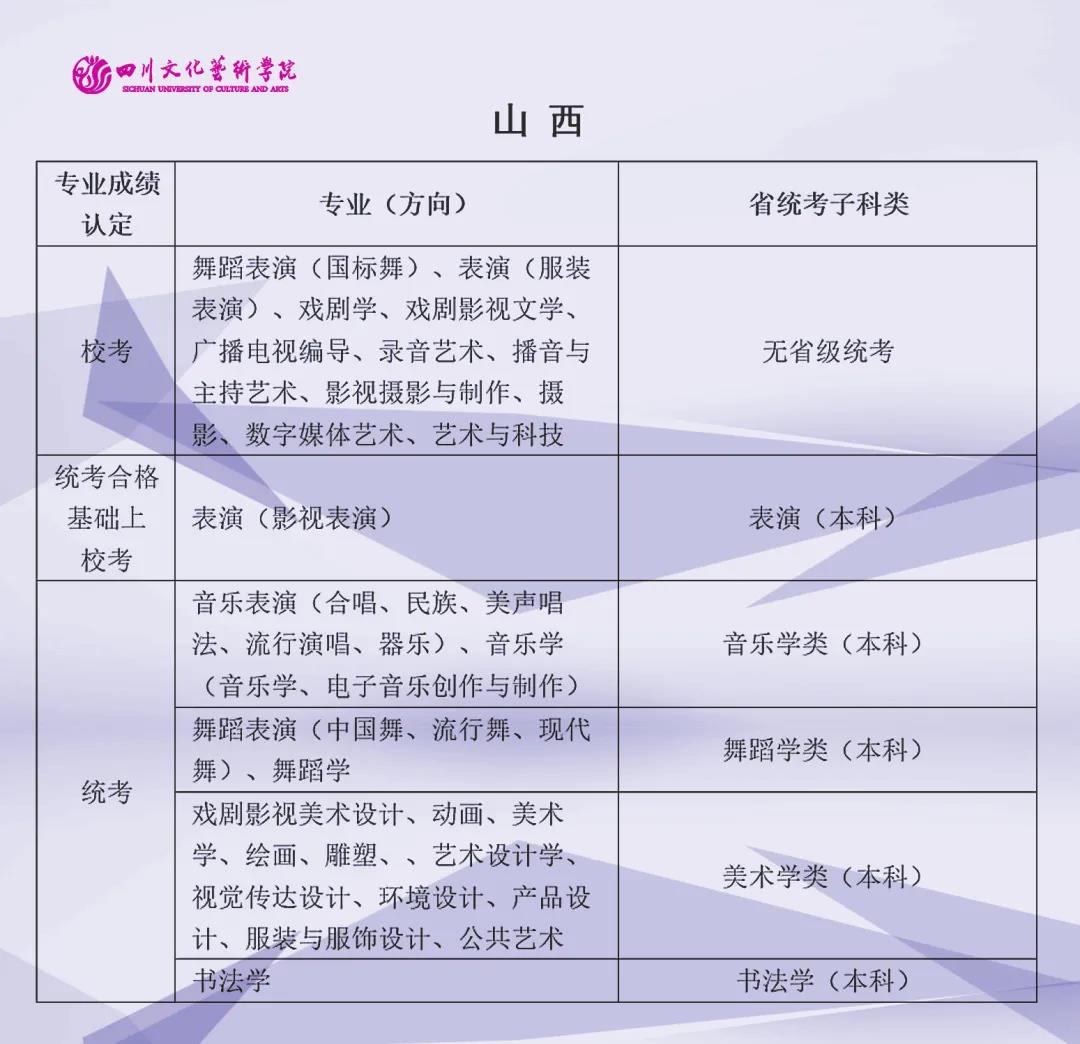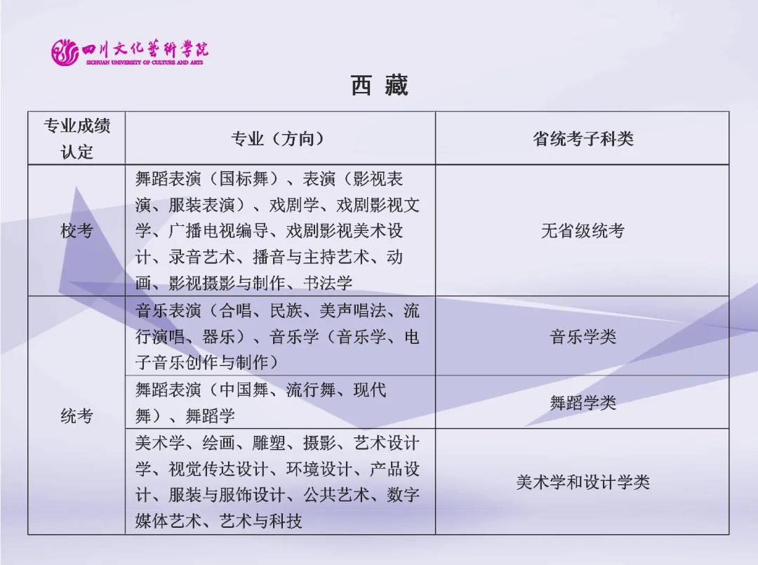 校考 | 四川文化艺术学院2022年艺术类专业与省级统考子科类对照表