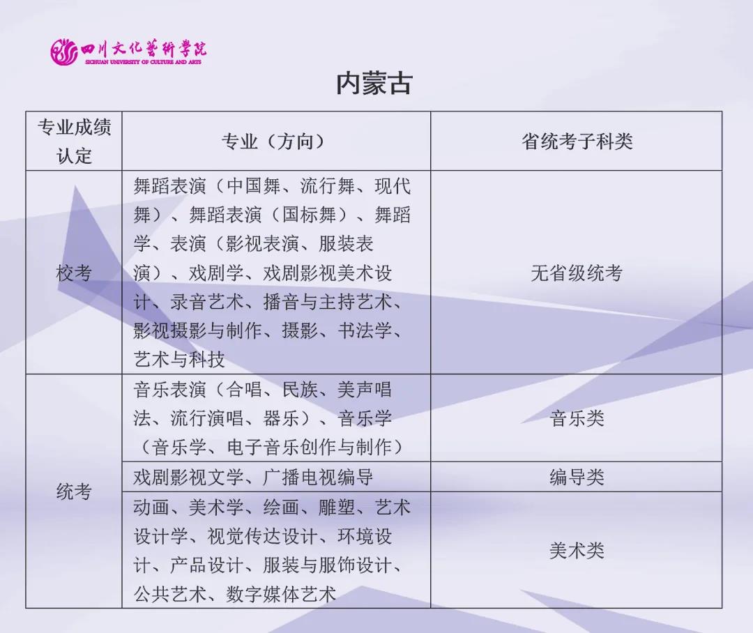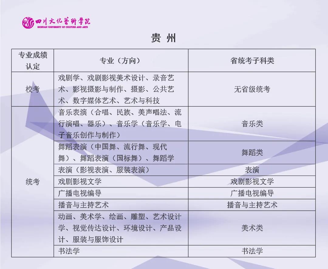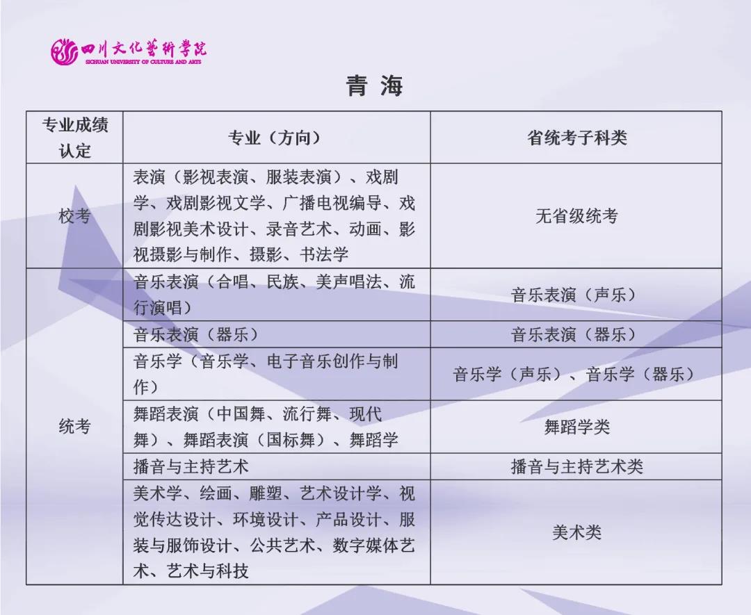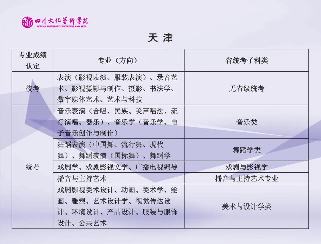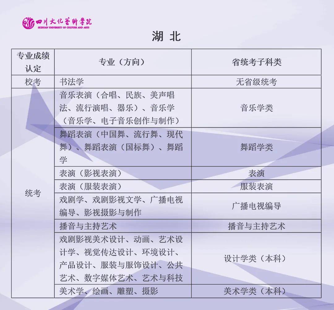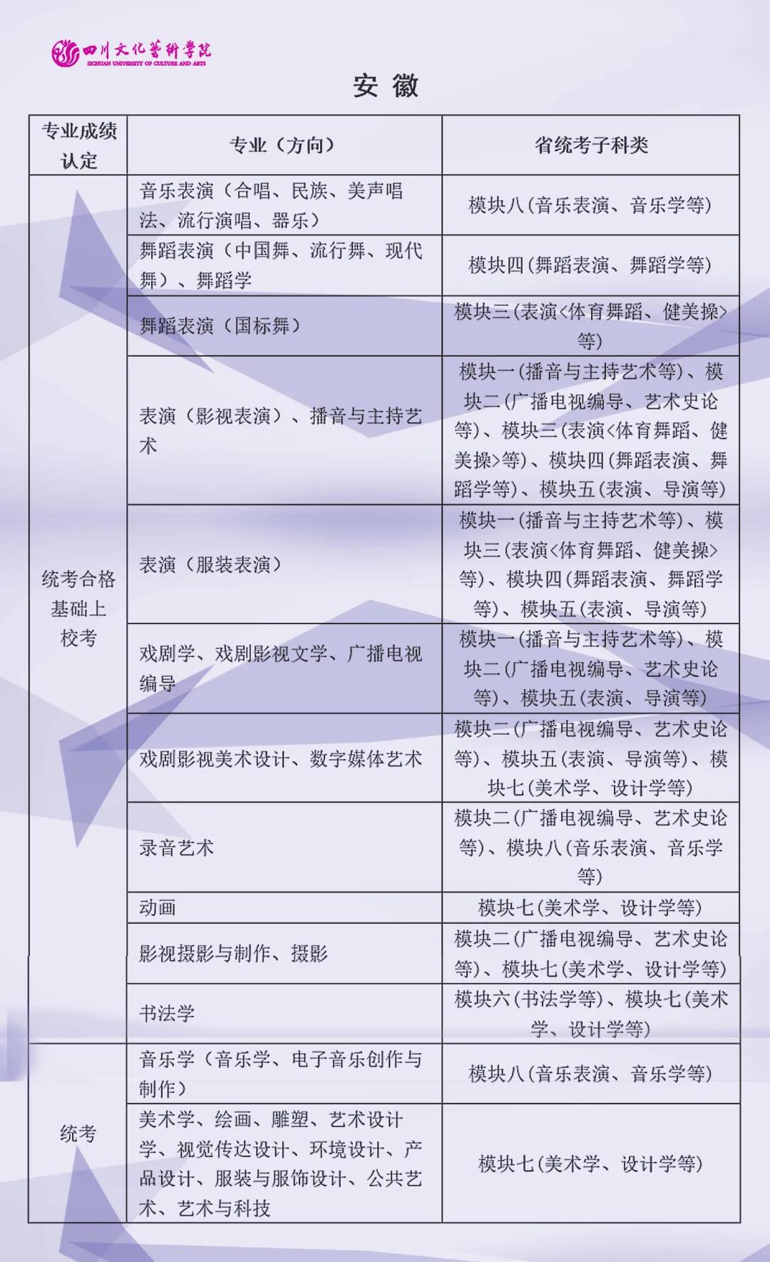 校考 | 四川文化艺术学院2022年艺术类专业与省级统考子科类对照表